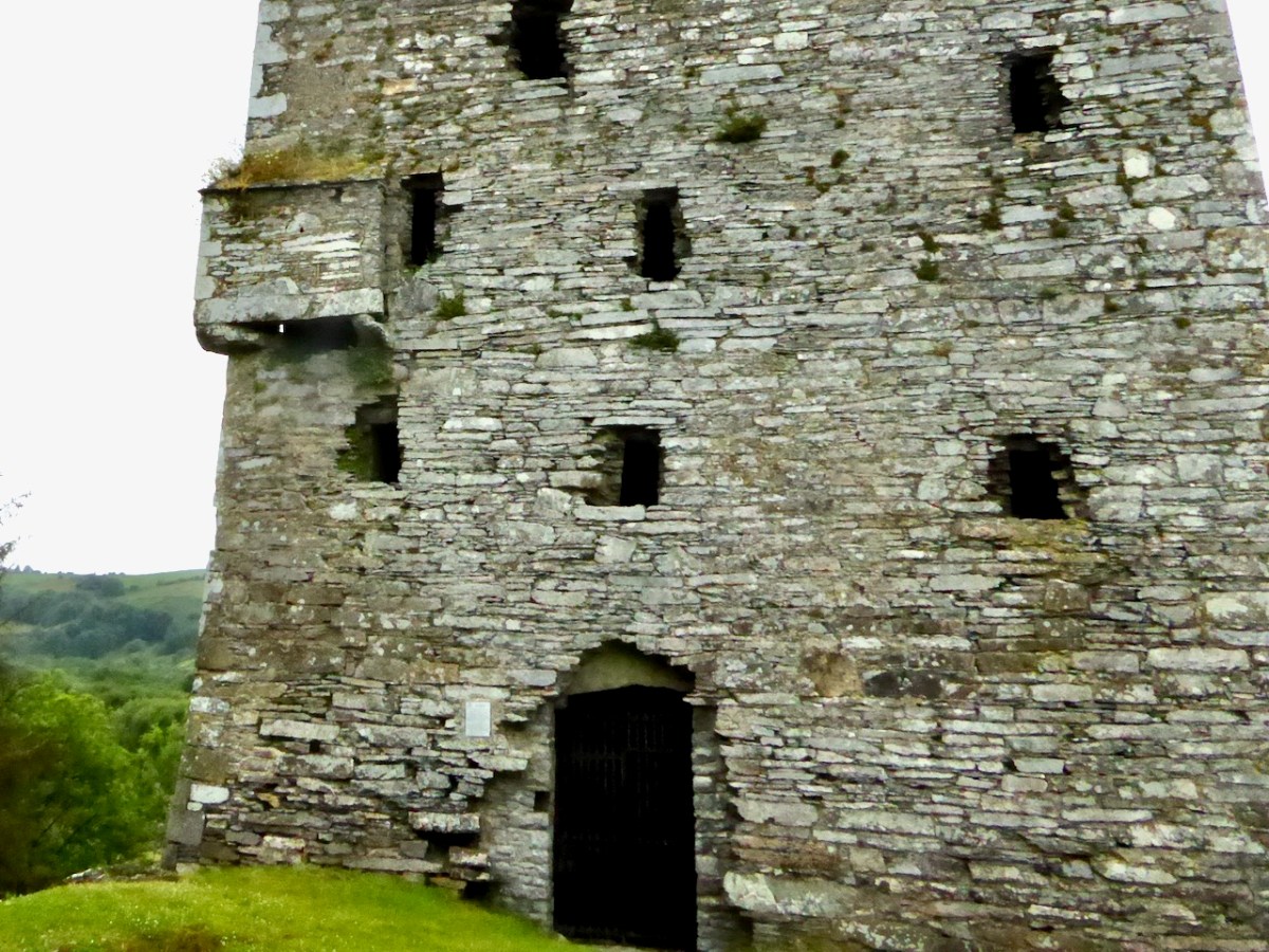 The castle I am writing about today, Ballinacarriga, is one of the best preserved and has many unusual details. It’s located just south of the Bandon River, between Dunmanway and Enniskean. The black and white illustration at the top of the post is from The Dublin Penny Journal of 1834. The sepia photo is from James Healy’s notebook, upon which he based his book Castles of Cork. Unfortunately, the castle is normally only really viewable from the outside, as it is quite hazardous to navigate internally. I have been very lucky indeed to have been able to visit it, including the interior, a couple of times, most recently in the company of eminent archaeologist and medievalist, Con Manning. Con was able to point out to me several features that I would not have understood on my own.