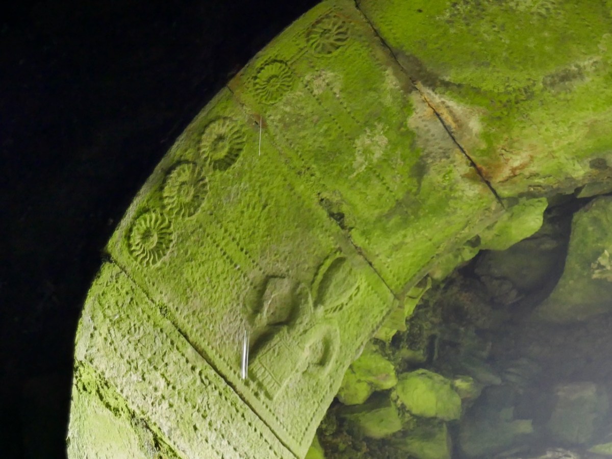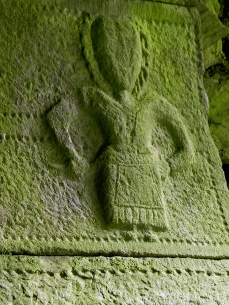 In a window surround at this same level (the arched one to the right of the fireplace) we can see the first of several carvings. It’s a figure of a woman with five rosettes, interpreted as Catherine O Cullane and her children. It’s an extraordinary detailed carving and I couldn’t help searching the internet to see if I could find analogous illustrations – and I did!