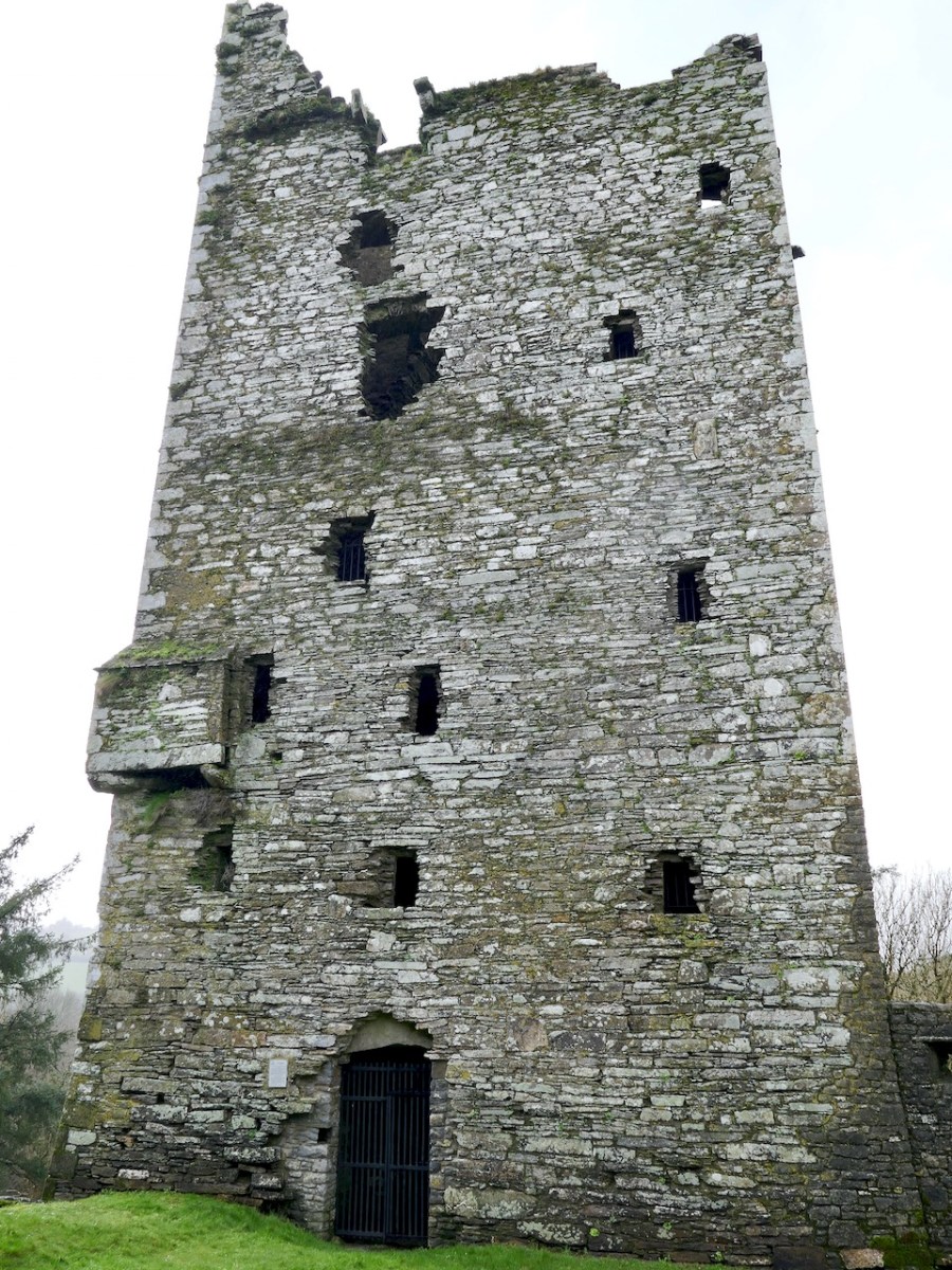 The door, as mentioned above, is at ground level – this necessitated different kinds of defences than a raised entry which could only be accessed via a stairway that could be detached and thrown away from the castle. Ballinacarriga had an iron gate that could be pulled across the door from inside, via a hole in the stone surround.