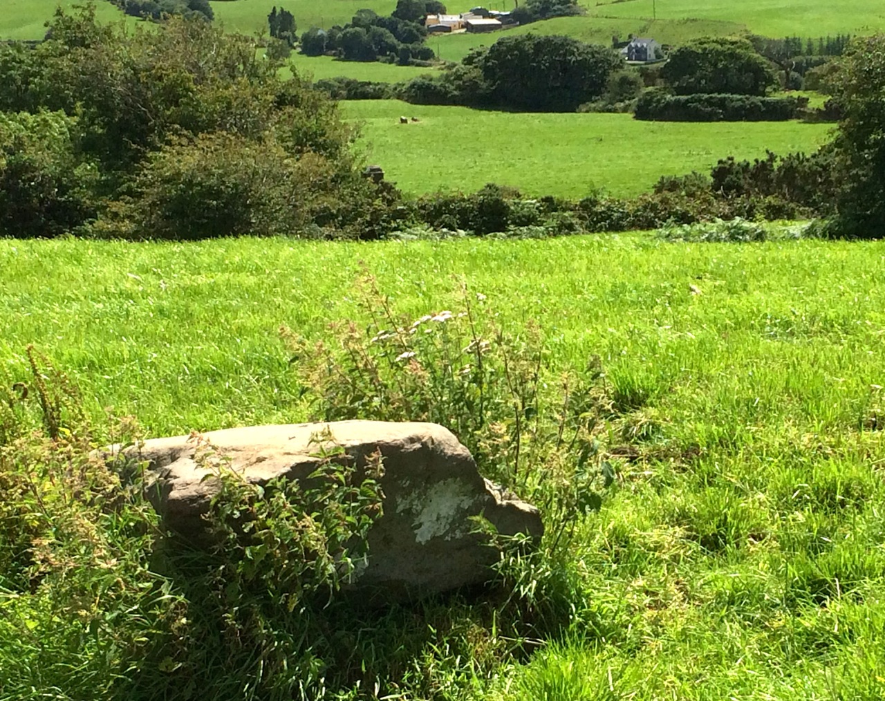 Another (fallen) standing stone in Cullomane, with stone pair visible in the distance