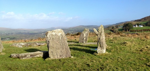 Dunbeacon Stone Circle – stone pair visible in front of white house