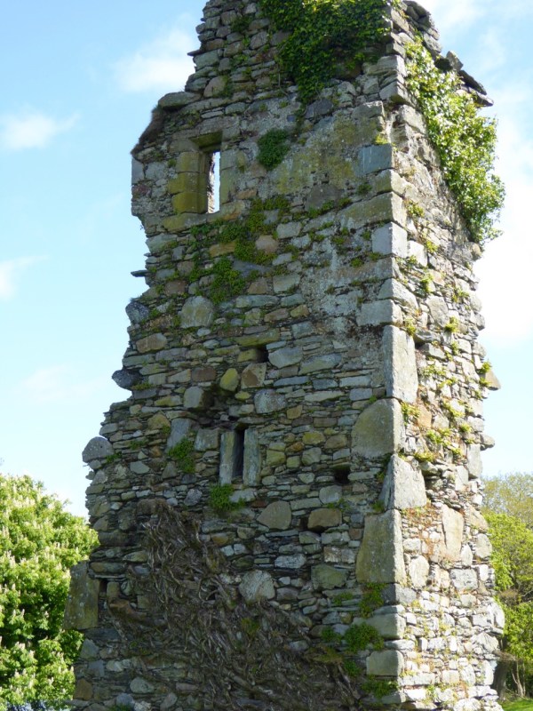 A vestige of a tower house at Abbeymahon, near Courtmacsherry, shows the best cut stones reserved for the quoins