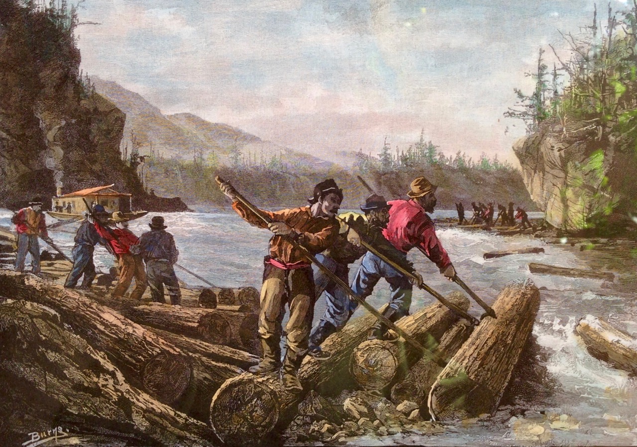 Canada – a new country built on fur and timber: ‘The Lumbermen’s Camp’ (top), and ‘The Drive’ (bottom) – thanks to Frank Runnels for letting us use these prints