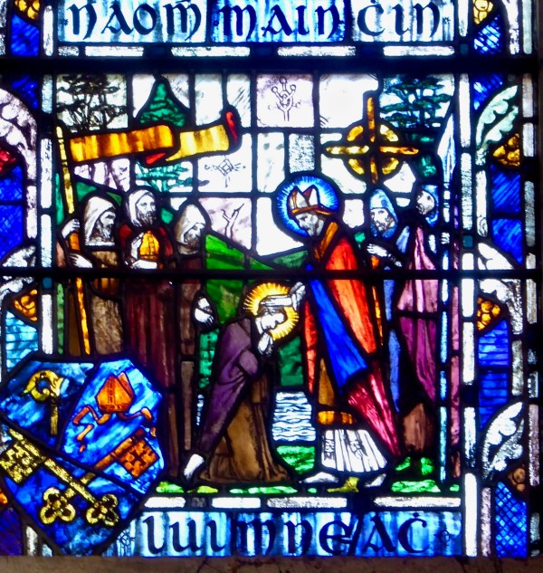 St Patrick blesses St Munchin of Limerick. Tur Gloine Honan Catherine O’Brien