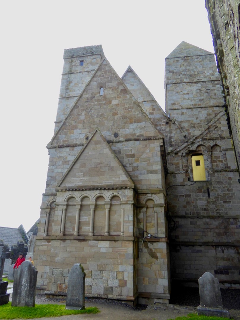 The two square towers are particularly interesting and have few parallels in Ireland. In fact, they are based on a church we happen to have visited two years ago in Regensburg (previously called Ratisbon) in Bavaria. Upon his restoration as King of Munster, Cormac received a visit from two Ratisbon monks, Isaac and Gervasius, accompanied by a carpenter (Conrad) and one other man.
