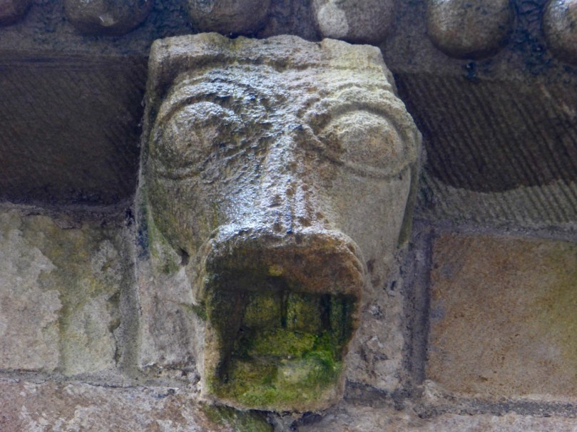 And wonderful doors they are! (Look back at Irish Romanesque 2 – Doorways for more about doors in general.) The south door is now the main entrance for visitors but in fact is relatively modest with only two orders and a timpanum depicting a animal, probably a lion. The archivolts are chevroned but weathering has damaged much of the other carvings.