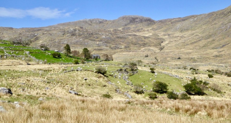 Because of the number of pieces of Rock Art at Derrynablaha, as recorded by Finola, I set out to visit the site and was fortunate, I think, to locate several of the pieces there: they are hard to find. My most significant impression of the place was its isolation and loneliness: when Finola was there decades before, the O’Sullivan house was occupied – a family home and working farm – now it was a ruin returning to nature. No one lives in that valley today: it is home to sheep and eagles.