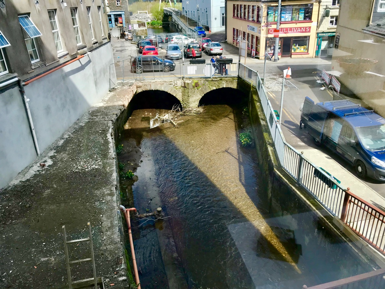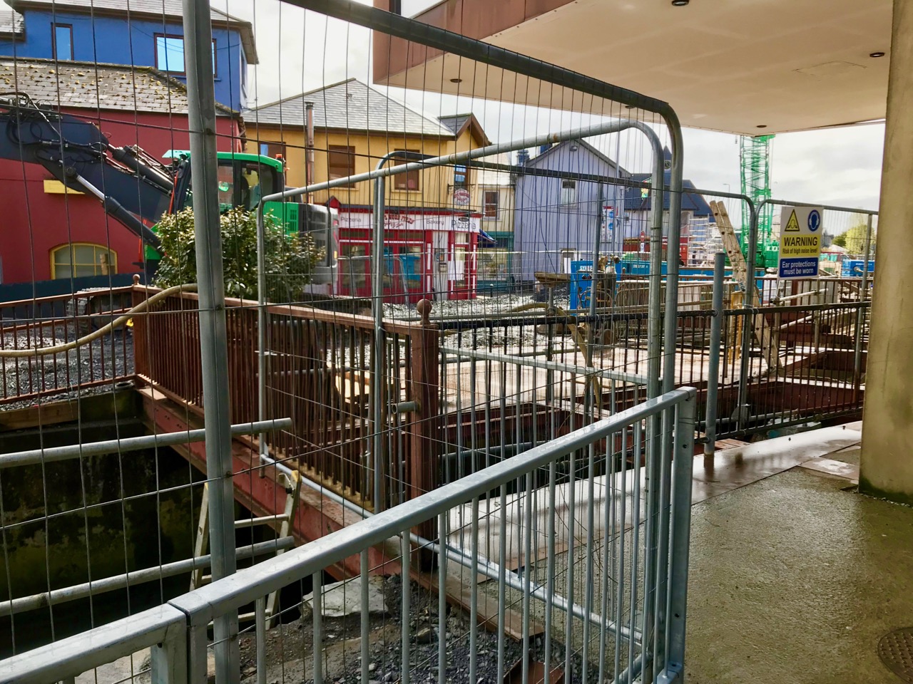 Peace and quiet in Skibbereen, before the works commenced. Header picture – the Caol Stream reflected on the canopy of the cantilevered gallery