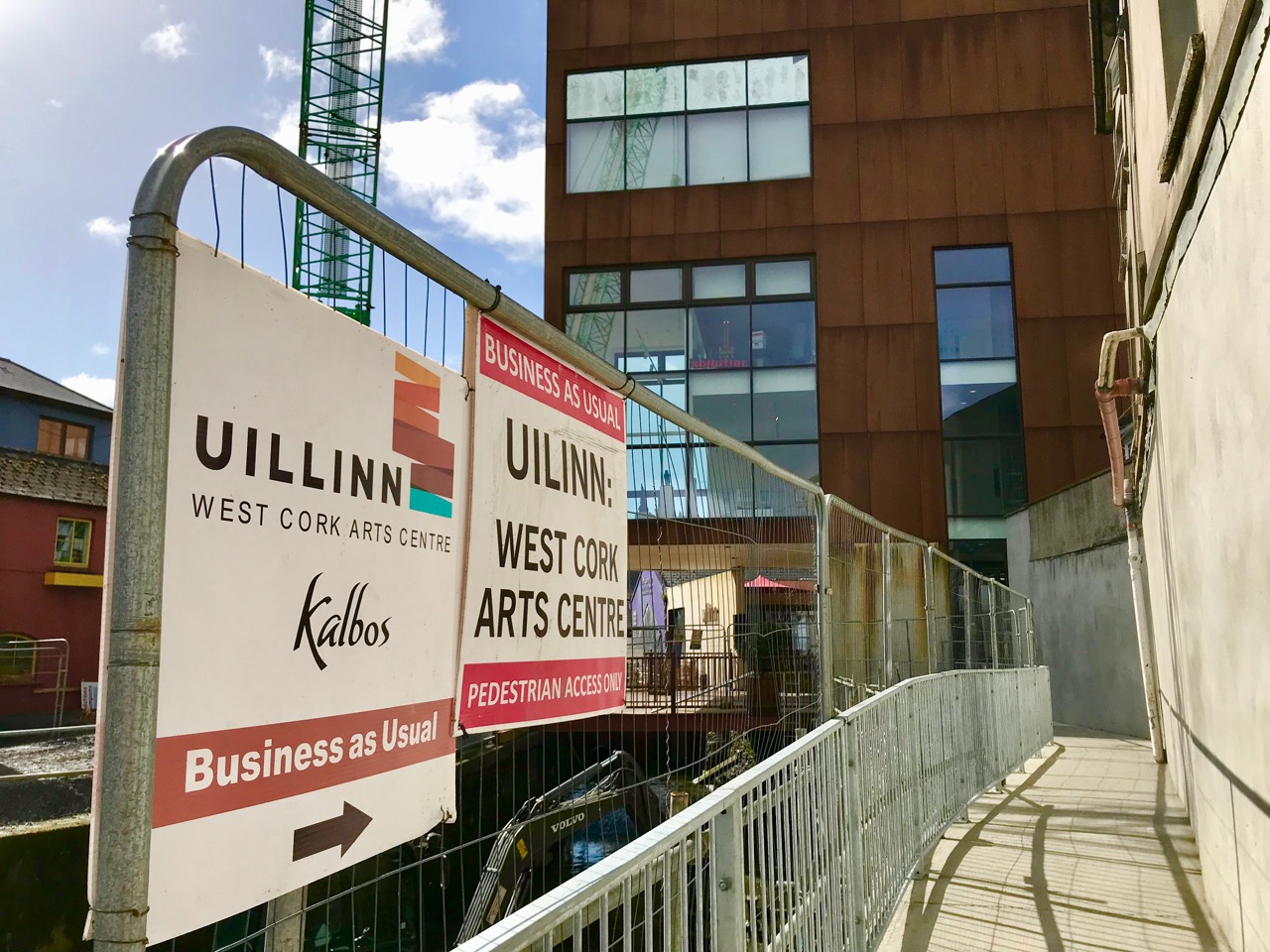 Uillinn, Skibereen’s unique contemporary art gallery, is thriving and surviving while apparently ‘under siege’ from the onslaught of the major engineering works engulfing the town centre at the moment. It’s all about making the town and its buildings safe from future flooding: extreme weather conditions – which are likely to get worse as the years go by – are threatening Cork city and many of the low-lying  West Cork communities and works are now in hand to protect these settlements against serious flooding into the foreseeable future. The result is a whole lot of disruption but, as always, imperturbable Cork Rebels are just getting on with life in spite of it all.