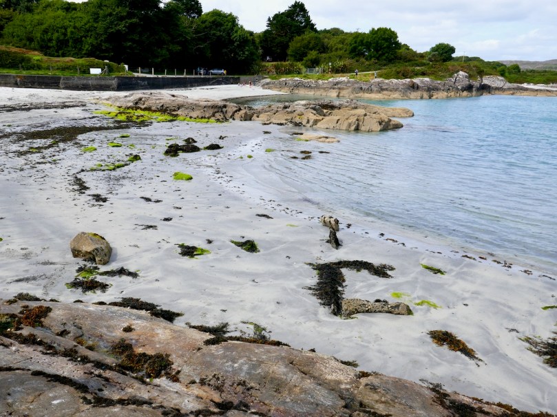 Hidden in plain site – that’s how we stumbled across a hitherto unrecorded archaeological site at Ballyrisode Beach. It’s a popular swimming place, often swarming with swimmers, sun-bathers and picnickers in the summer and enjoyed by dog-walkers in the winter. Like many others, we were simply enjoying being at the water on a warm day when Robert drew my attention to an odd grouping of stones.