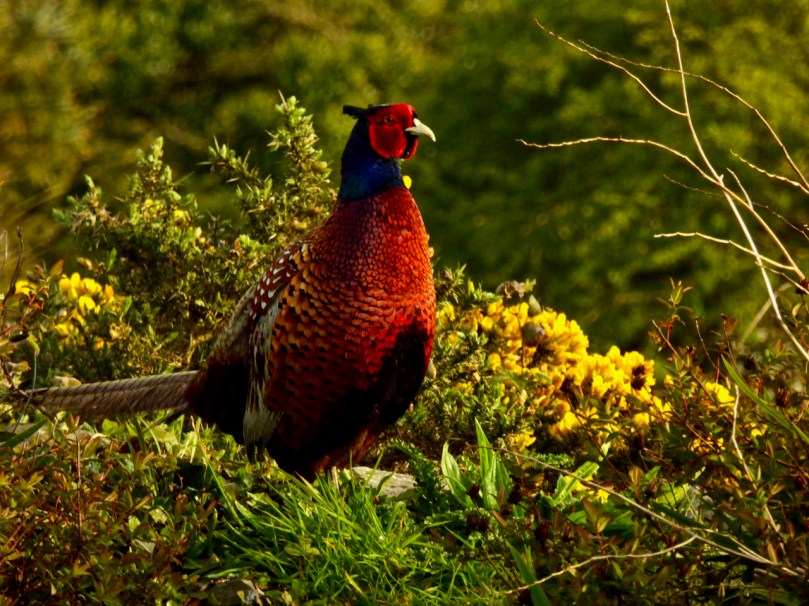 Here at Nead an Iolair we have a resident pheasant, Finbarr. He stays around all year, sometimes alone, but more often with a female or two, or even three, in tow.