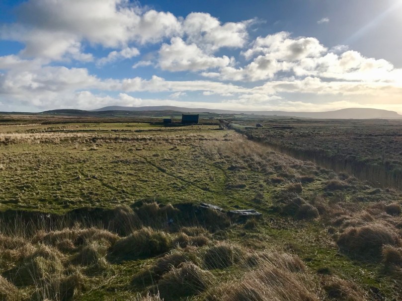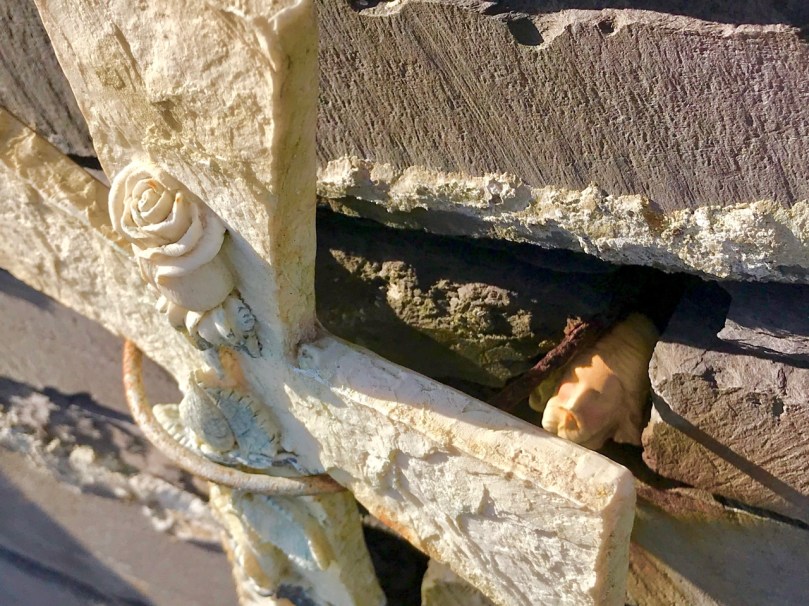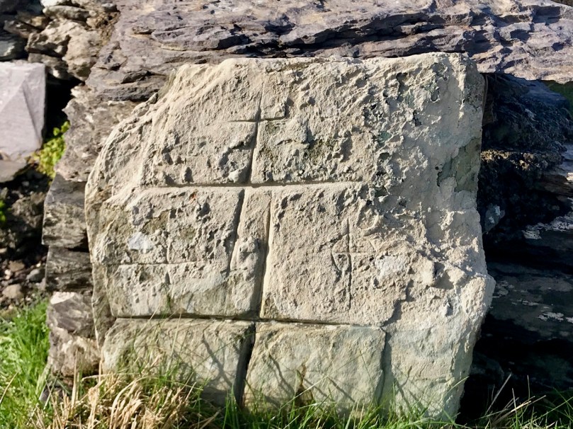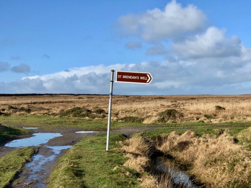 All the photographs above are from a remote and atmospheric site on the north west side of Valentia Island: St Brendan’s Holy Well. It’s a long way off the beaten track: desolate, bleak and boggy – but justifies making the effort. There are ancient stone crosses, carved slabs, cures to be had, and history. St Brendan himself journeyed there from Tralee in the fifth century, climbed the cliffs at Culoo, and found two dying pagans at the site: he anointed them and they became Valentia’s first Christian converts.