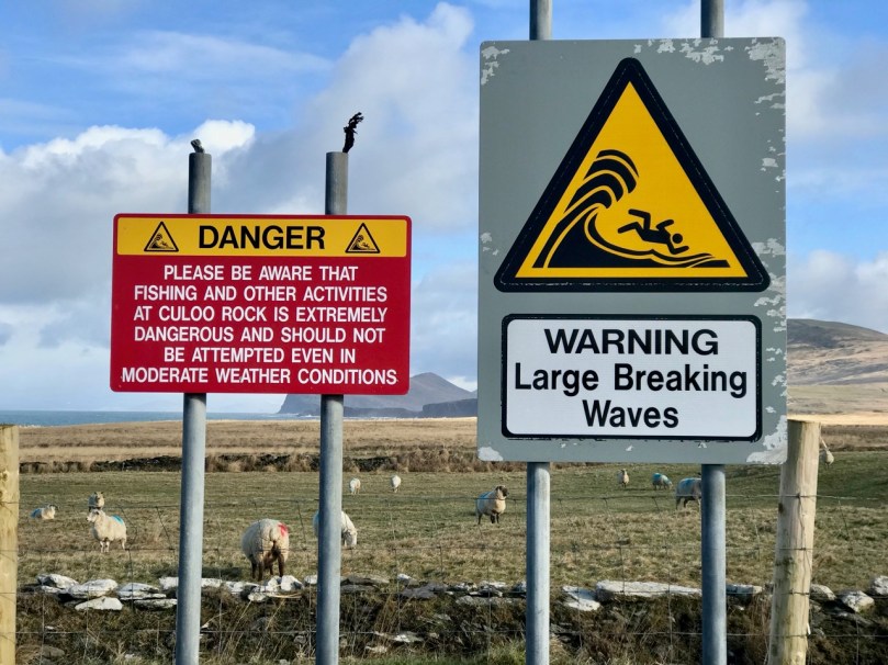 I certainly endorse that sign in the centre, seen on Valentia Island. Hare trapping in South Kerry is illegal – and so it should be! But – how could we not follow a sign that says: Slate Quarry – Grotto?