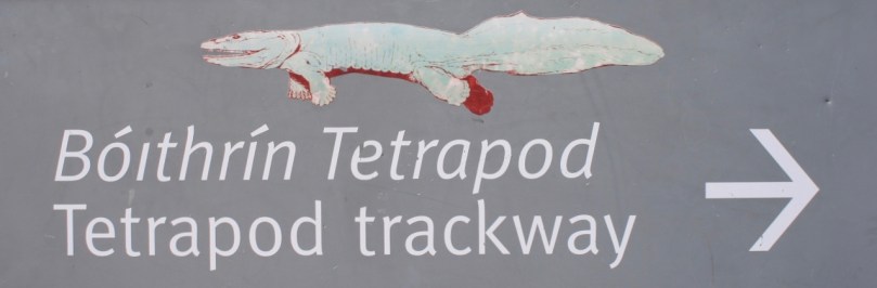 Have a look again at the signs above: one points to ‘Tetrapod Trackway’. This is surely a must-see for any visitor to Valentia Island as the fossilised Tetropod footprints here, representing the point at which life left the Devonian Seas 370 million years ago to begin to evolve on dry land, are the best examples of only four sites found to date in the world! We hurried to have a look – but the site was closed for repairs. You can see a picture of the tracks here.