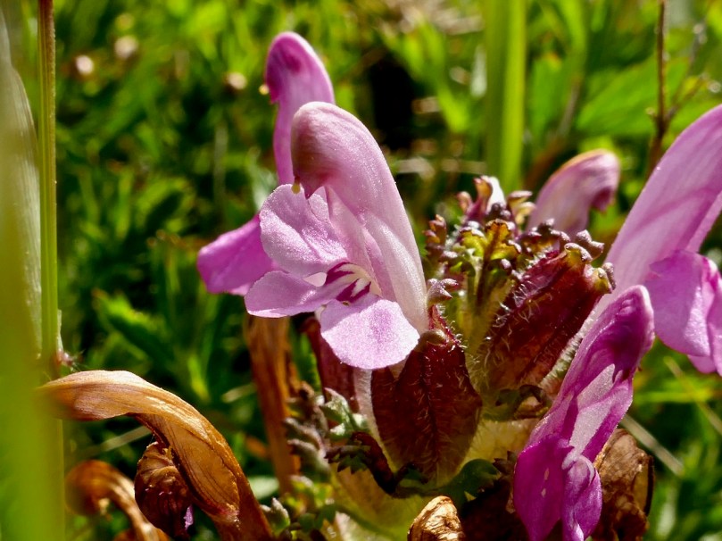 I don’t think I have ever seen such a profusion of Lousewort (below) anywhere else and this is one of the things that gives Long Island a particular colour at this time of year. It’s not a pretty name, for what is, in fact a beautiful little plant, but it was so called because it was believed that sheep got lice from eating it. This has never been proven, but the name stuck. Long Island, with its acres of damp moorland, provides the perfect habitat for Lousewort.
