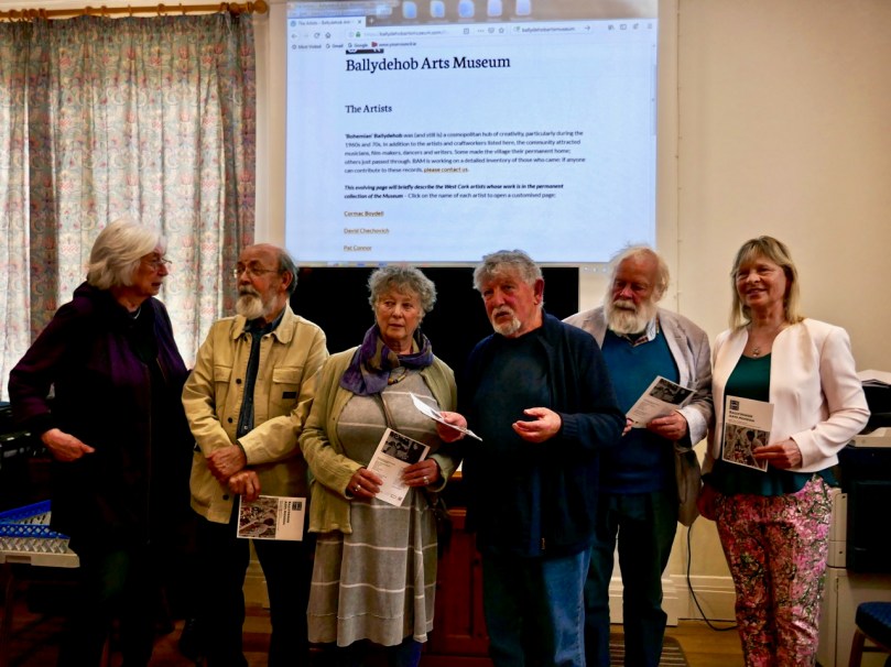 A line-up of West Cork artists from the heady Bohemian days: Birgitta Saflund, Brian Lalor, Leda May, Pat Connor, Jim Turner and Carol James. All pictured together at this week’s opening of the Ballydehob Arts Museum