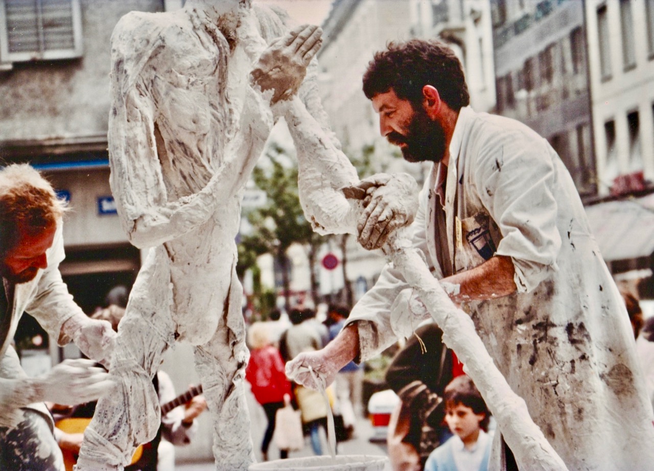 Having set up the exhibition in the Reithalle, Zurich – a fine, capacious premises, the artists realised that relatively few people were coming to see it, as it was a fair way out of the main thoroughfares, and little publicity had been organised in advance. So they put their creative heads together and came up with the idea of making a piece of art in the city centre – something which no-one could ignore.