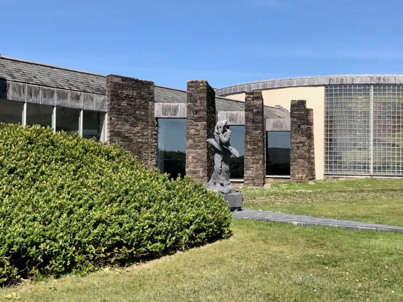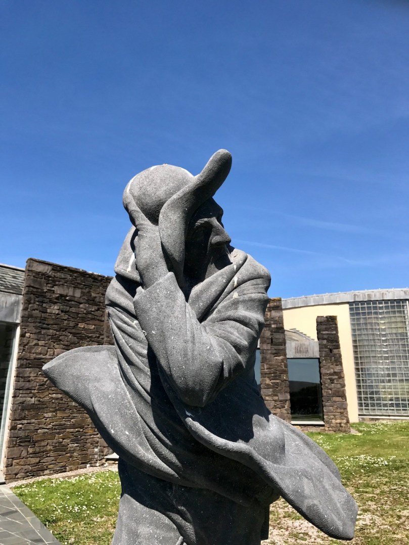 That pleasant task done, we had time for a wander around the Centre and a closer look at the architecture and the art. Robert, a modernist, was very impressed with the design of the building, opened in 1993. All the exhibits inhabit pods off a long central corridor which leads the eye down to a huge end window with a view of the Great Blasket. In this way, it reminded us of the Lexicon Library in Dun Laoghaire, although that’s a much larger building.