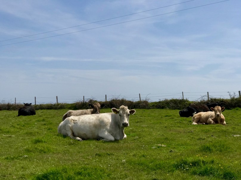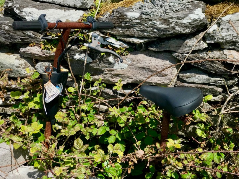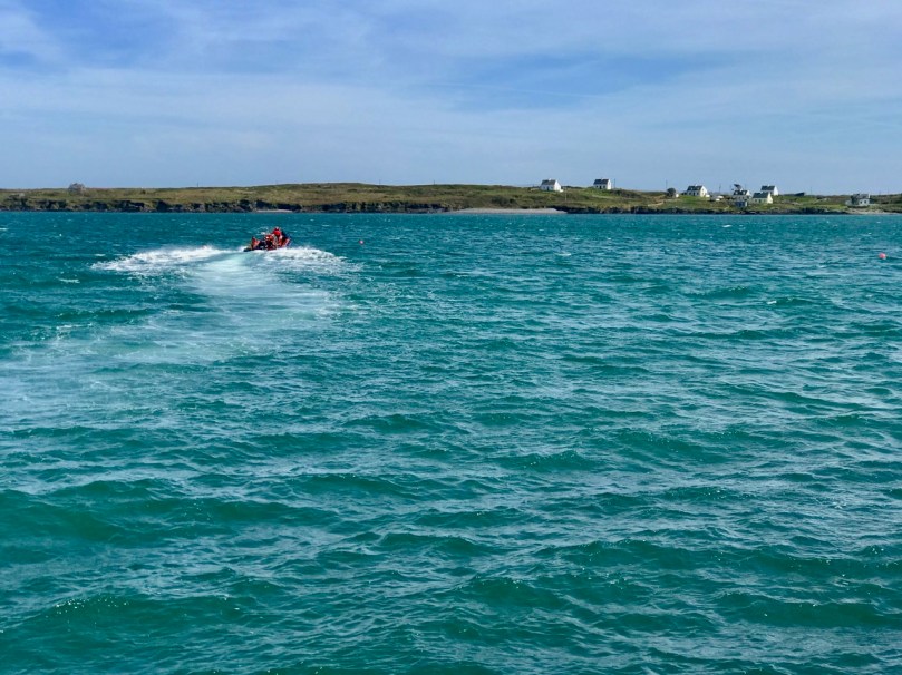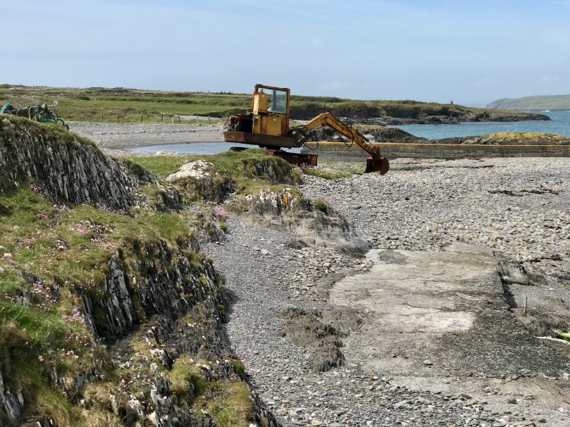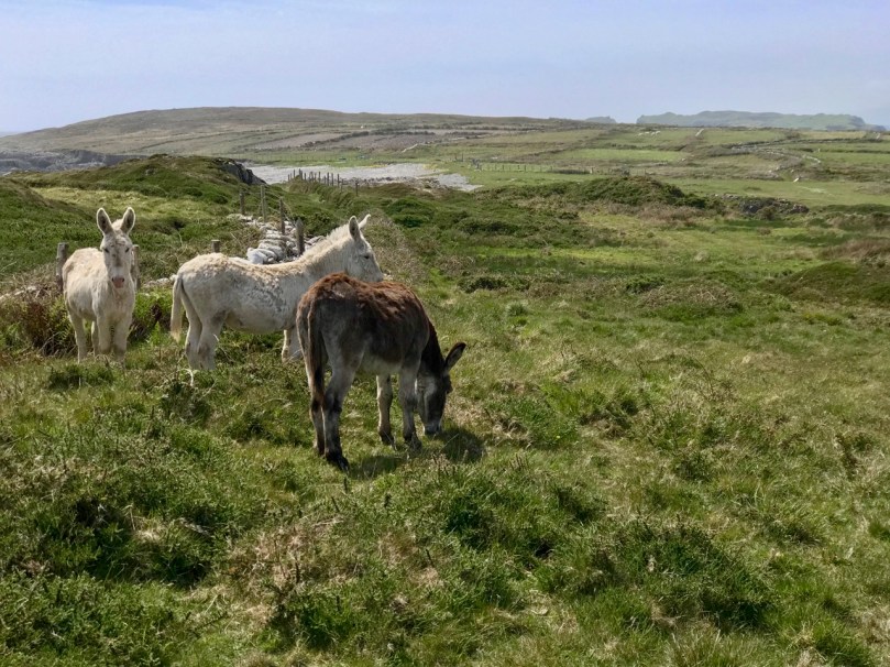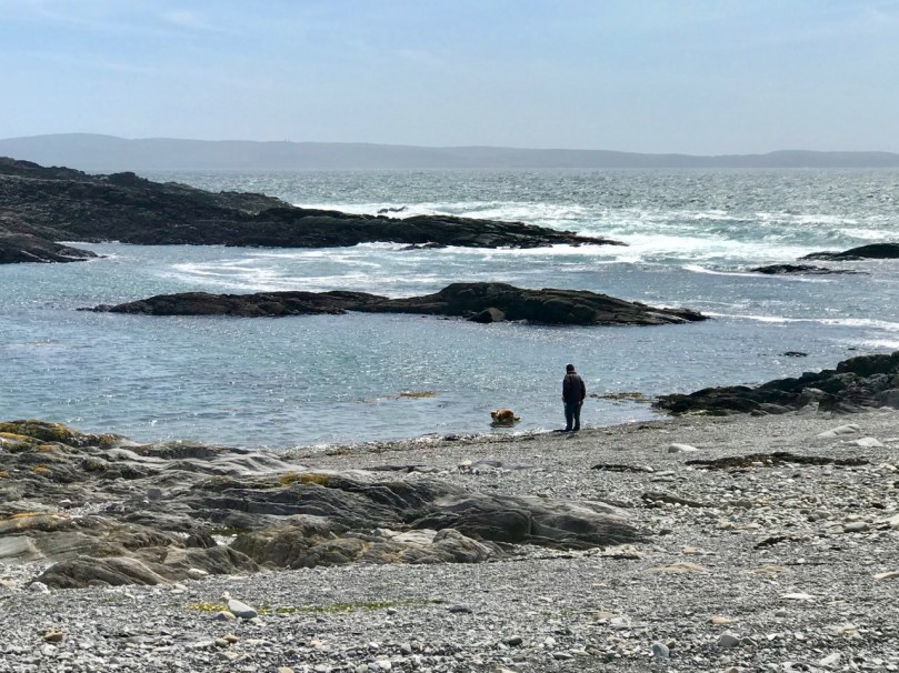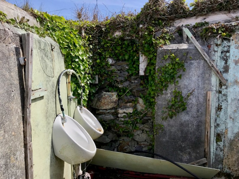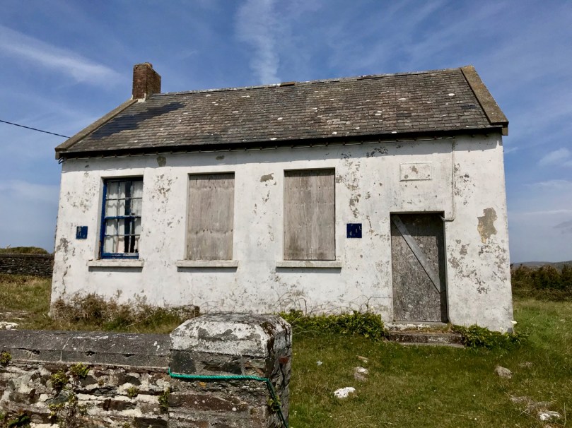 The seven permanent human residents on the island (in 2019) are supplemented by a good few four-legged inhabitants: we met most of the latter. Once there were enough people living here to support a school. That building now stands gaunt and empty right at the centre of a single road serving the two and a half mile long strip of land that lies at the very edge of the Atlantic.