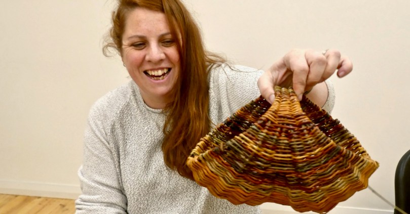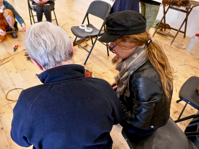 How to sit, how to hold the willow as you worked it, safely using a sharp knife (above), knowing when to discard something that wasn’t working – we were led through it all. As the right brain (creativity) took over from the left brain (process, logic) we descended into near-silence, each of us deeply concentrating on the shape that was emerging under our hands.
