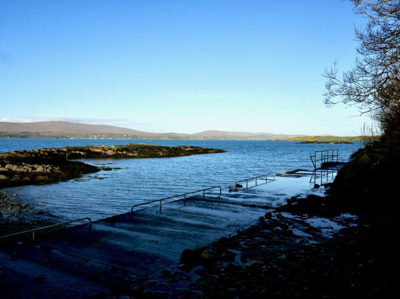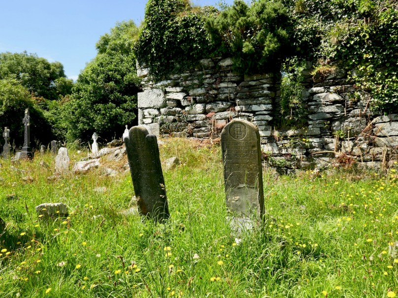 A short walk up an old boreen leads us to a clachán – a tiny settlement of houses, now all in ruins. The residents had magnificent views back down to the bay in their day, but as people say around here, you can’t eat scenery and the families who lived here are long gone to a better life elsewhere.