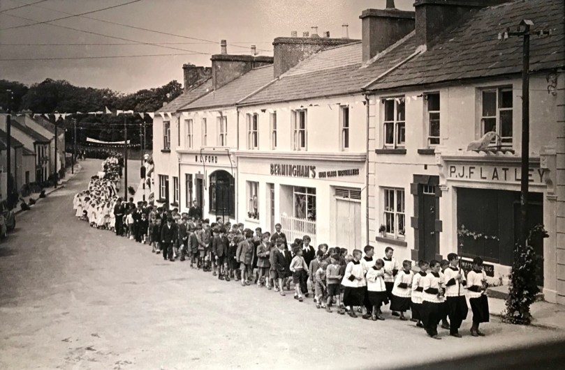Above – monochrome Kinvara: the Forge, and Corpus Christie procession