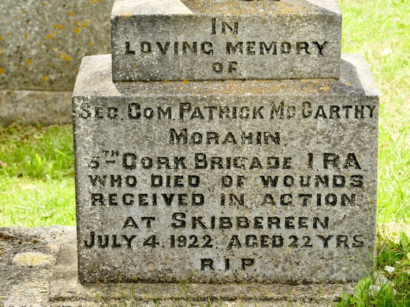 Among those buried at Aughadown is Patrick McCarthy of the 5th Cork Brigade of the IRA. He took part in the Kilmichael Ambush in 1920 and was shot during the Siege of Skibbereen in 1922, aged 22. It was said that a lit cigarette revealed his location to his assassin. A plaque now marks the spot where he was killed on the Windmill Rock in Skibbereen.