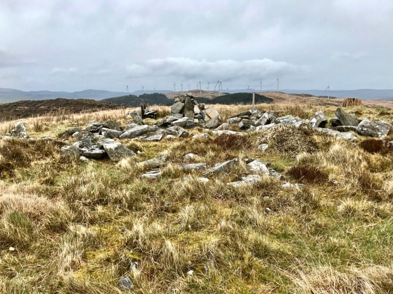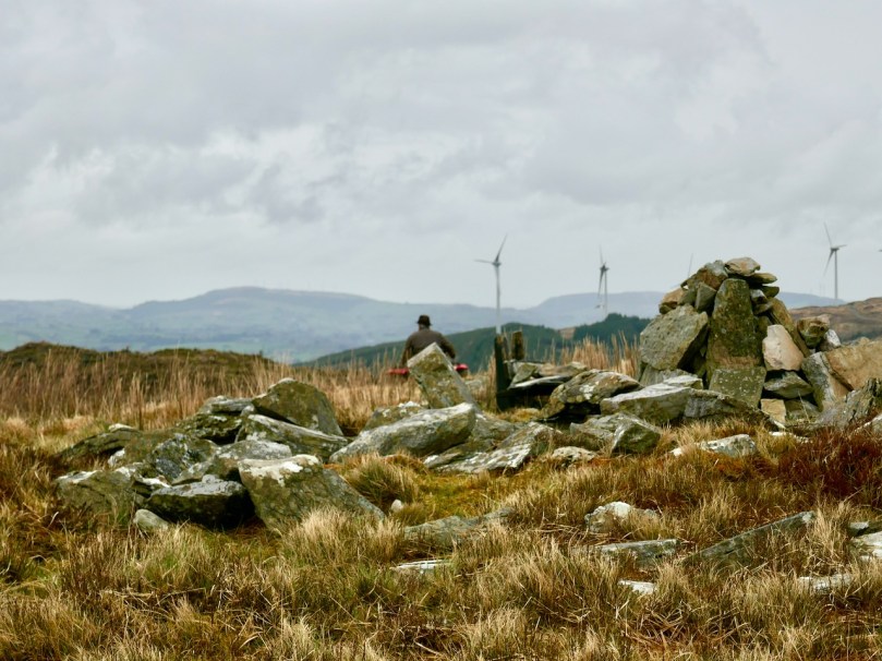 As we rounded the last bend in the trackway we could see the summit ahead of us. Initially, we were delighted to see a substantial cairn. But we were surprised by the number of larger, roughly shaped boulders and slabs which were lying around it. Also, there seemed to be a substantial earthen raised platform.