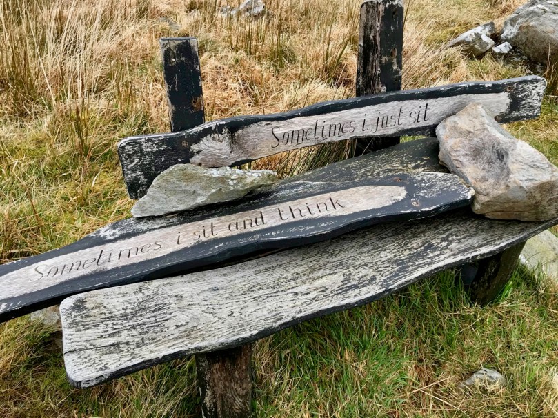 To add to the interest – and the enigma – there were some 21st century monuments on the same hilltop. An inscribed bench and a carved wooden marker which resembled a gravestone, with wording on both sides: