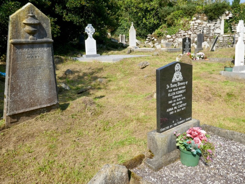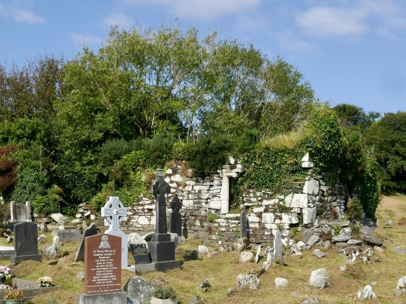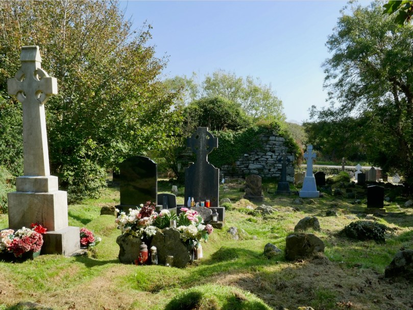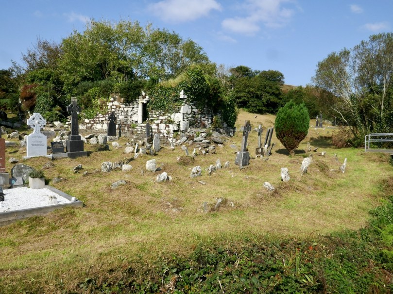 Killhangle is beautifully located, near the coast and with a rippling brook running through it. It is well looked after and several of the graves have flowers and evidence of recent visits.