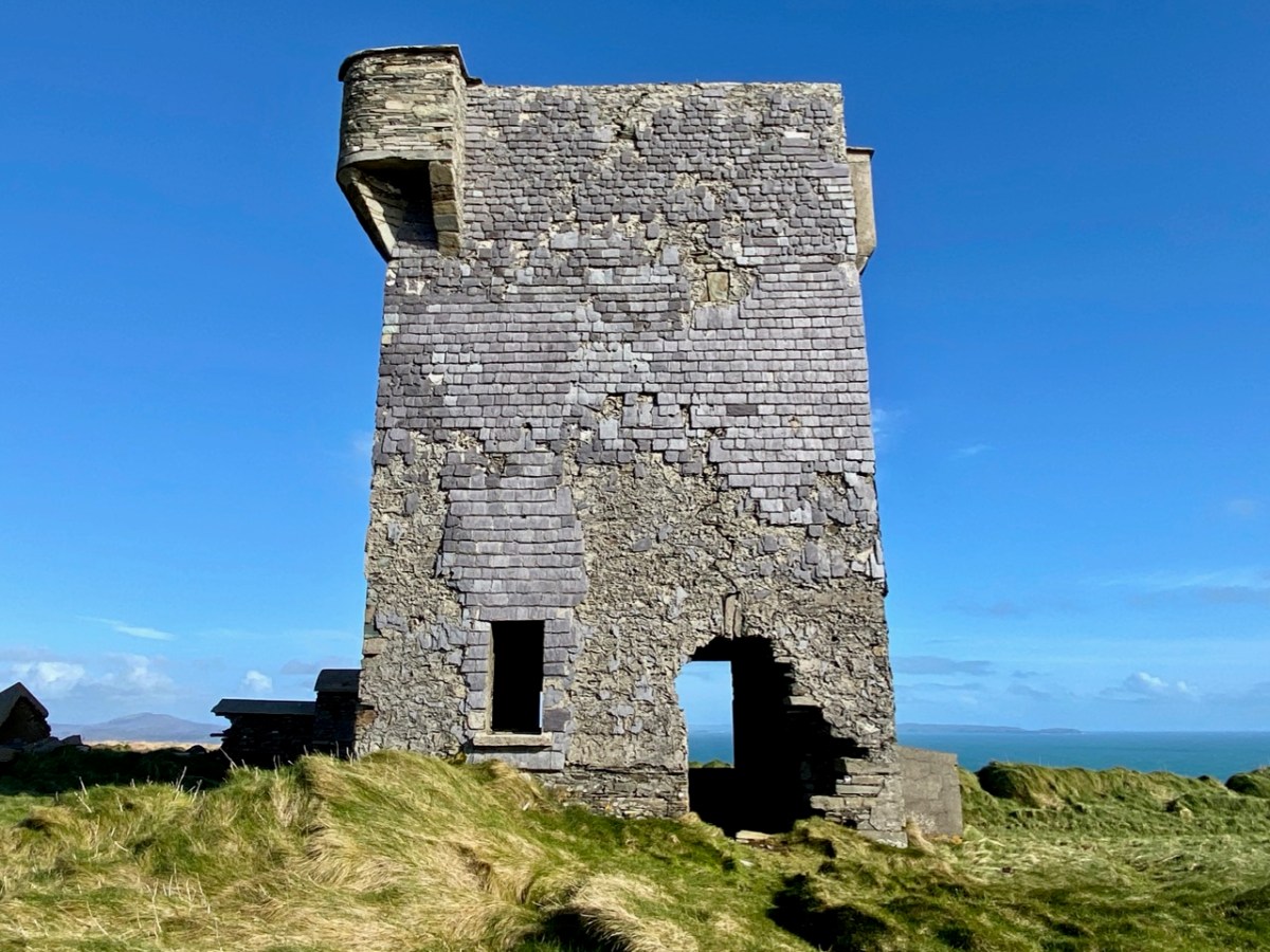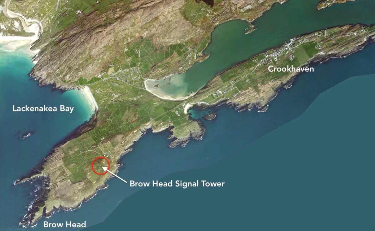 It’s surprising that it’s taken us eight episodes of this series to reach Brow Head, as it is one of the nearest to us, and one of the best preserved – albeit a ruin. It’s not far from the last one we explored: Cloghane, on Mizen Head. In fact, at 3.8km apart, these two towers are the closest of any in the whole system of signal towers around much of the coast of Ireland: 81 towers, each one generally in sight of two others.