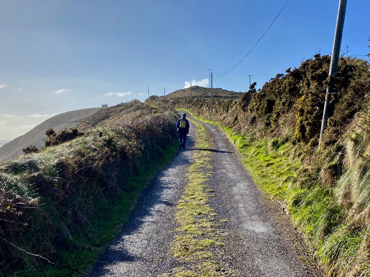If you set out to visit the Brow Head site on a good day, you can’t do better than to park at Galley Cove – at the bottom of the long, steep access road (and beside the Marconi commemoration board and sculpture by Susan O’Toole) – and then walk up. You will enjoy continuously changing spectacular views in all directions, and you will begin to see the signal tower above you as you approach the brow of Brow Head.