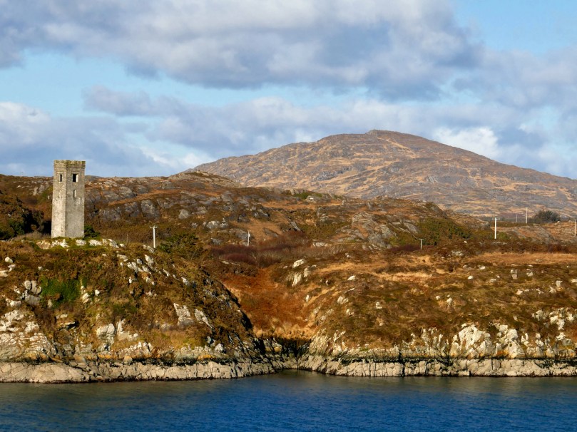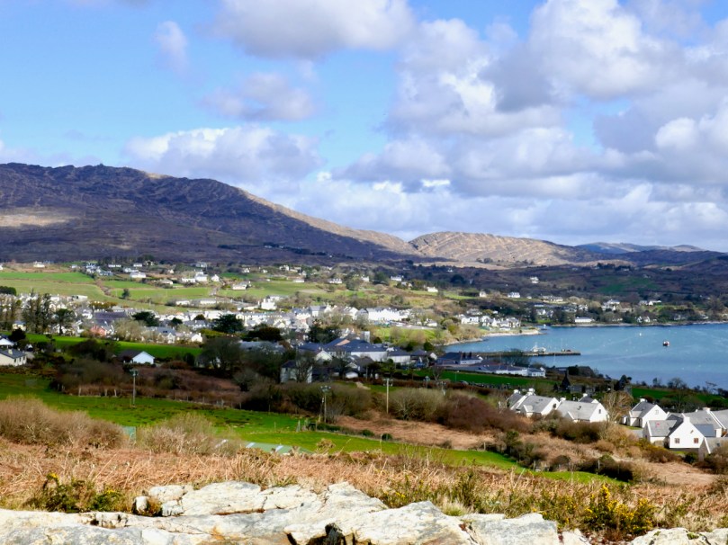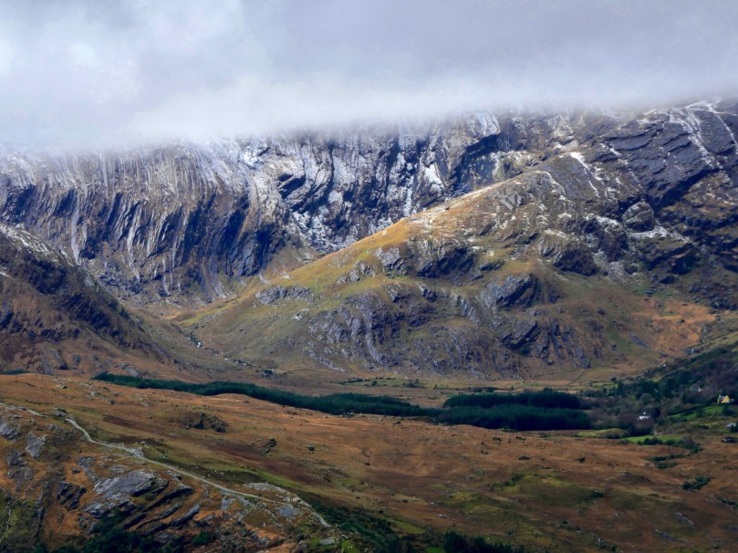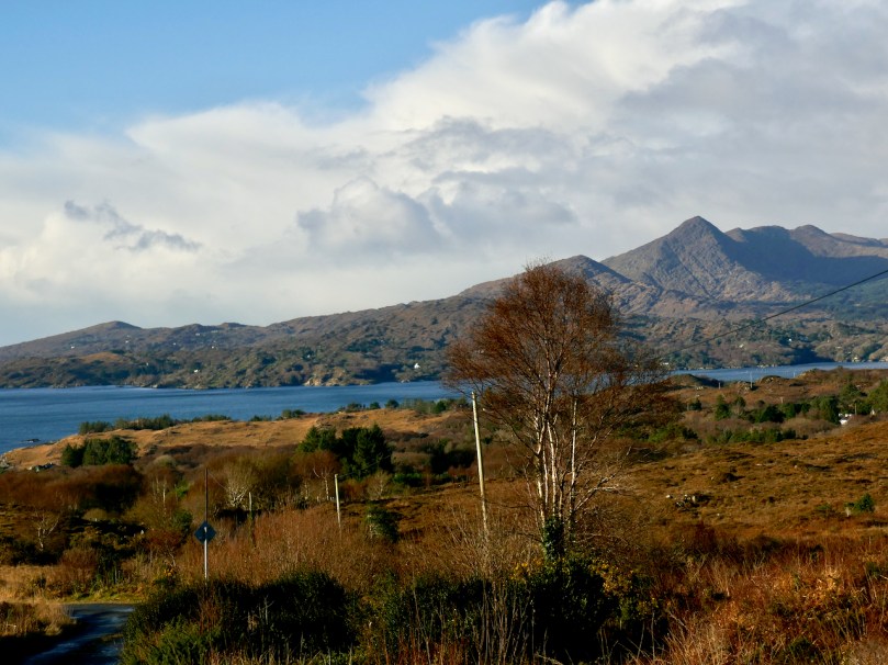 We don’t get snow very often, but it’s certainly visible on the high points, such as on the Caha Pass between Glengarriff and Kenmare. Praeger loved this dramatic geology with its crags and folds.