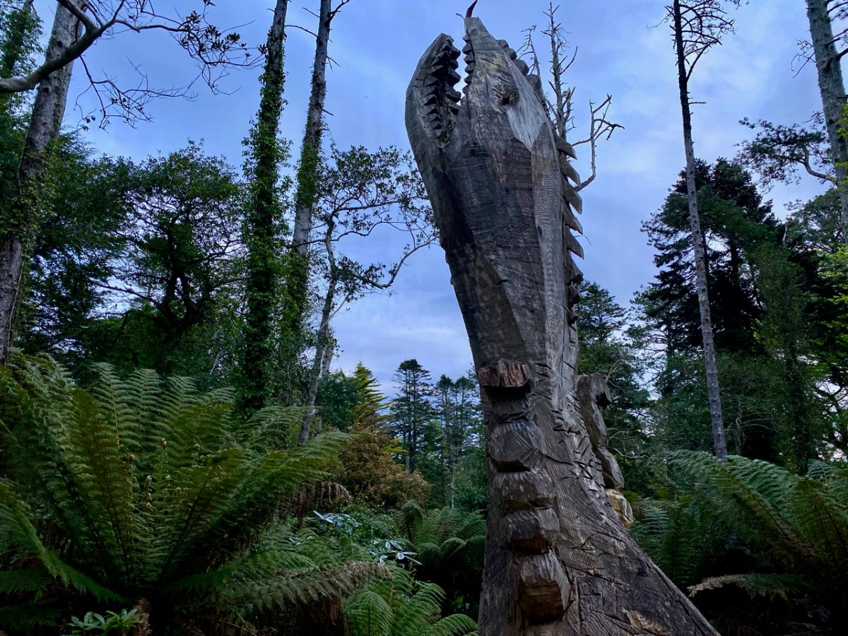 In addition to the Dinosaurs, which are well worth an exploration (I have only shown a few here to tantalise you into a visit!), there is a tree-fern forest planted by Blennerhassett, and spectacularly enhanced by the present owner, Billy Alexander, who has been awarded a Gold Medal at Chelsea Flower Show for his Kells Bay Gardens ‘mirocosm’. There are plenty of landscaping features old and new, and a ‘Sky Walk’ rope bridge, which is quite challenging.