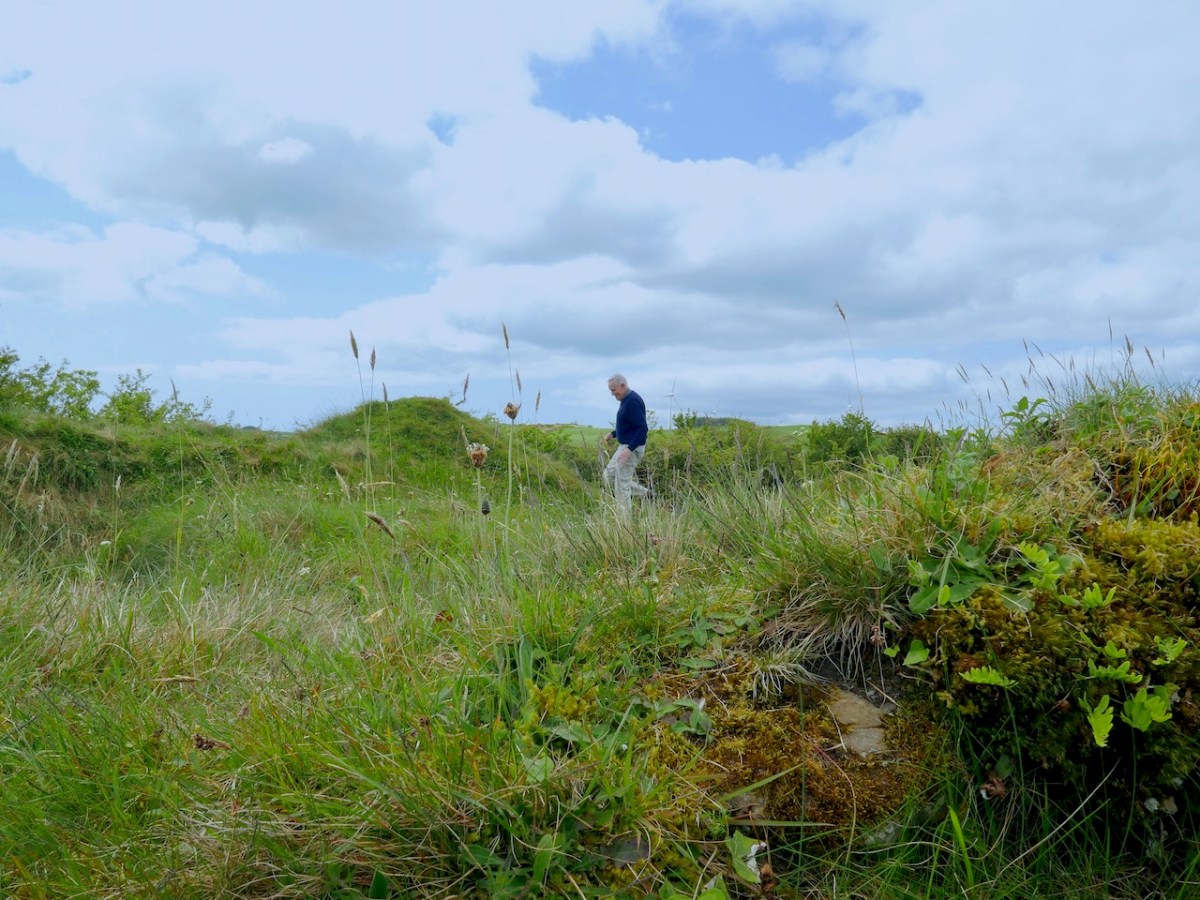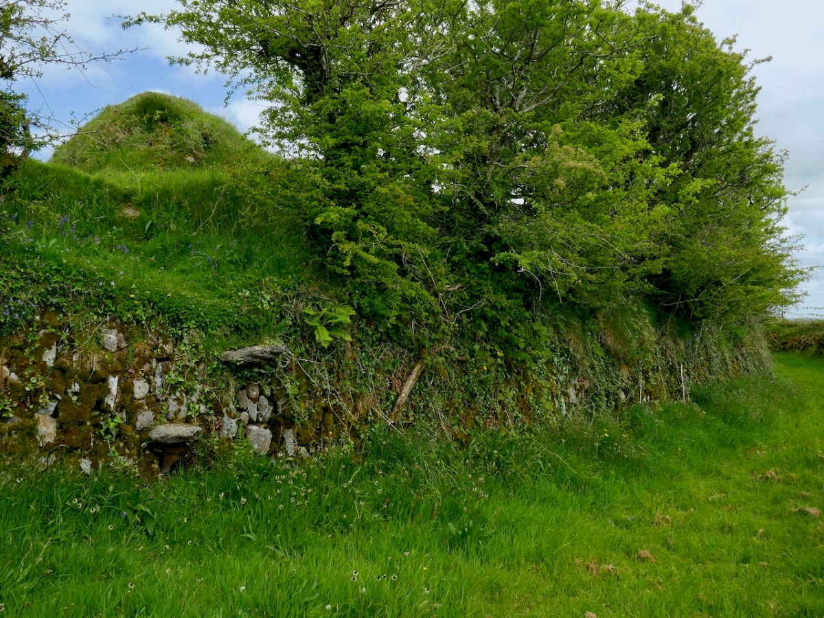 In the course of 2023 and early 2024 Robert and I visited four locations with Con Manning, retired archaeologist with the National Monument Service and a recognised authority on Irish medieval archaeology. Con has now written about the four sites in the latest issue of Archaeology Ireland, naming them as Angle-Norman ringworks. The first is Castleventry, to which we were brought by local historians Dan O’Leary and Sean O’Donovan, and I wrote about our visit to that that one here. So go back now and read what we found there and how intrigued Con was by what he saw. This was the site that set him off on his investigations.