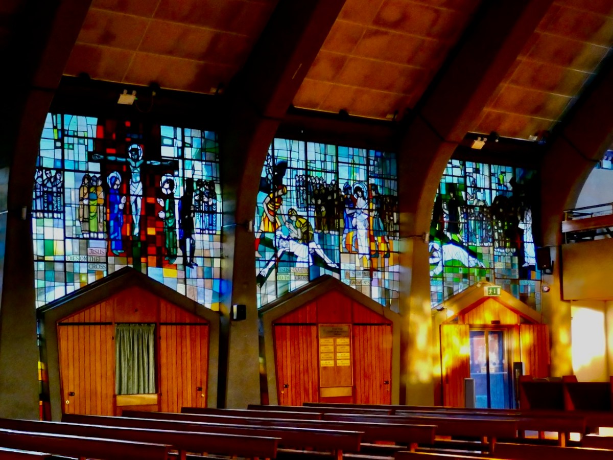 Let’s take one example – the church in Ballymun, Our Lady of Victories, one of the first batch of six churches in the Dublin Diocese that were built in the five years immediately after Vatican II, and which take into account the Guidelines of the council. Stepping into this church, as I did for the first time in May this year, is an immersive experience. First of all, it’s enormous – a reminder that in the 60s we were building Catholic churches which could accommodate thousands of congregants over the course of several masses every Sunday.