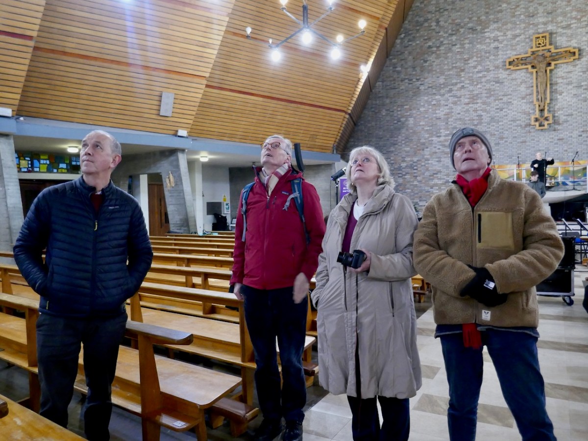 Grand so, you have all you need now for some ecstatic wanderings around Dublin Churches. I leave you with our own ecstatic wanderings – as a bookend to this post, here we are in Greenhills, quite in awe of Richard King’s and Johnny Murphy’s enormous window. Left to right is Paul Donnelly, David Caron, Ruth Sheehy and Robert.
