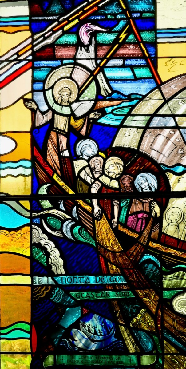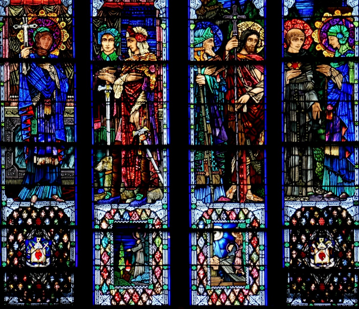 The John’s Lane church features in David’s Book, with a detail from the St Rita window. Here’s all of the narrative part of the window.