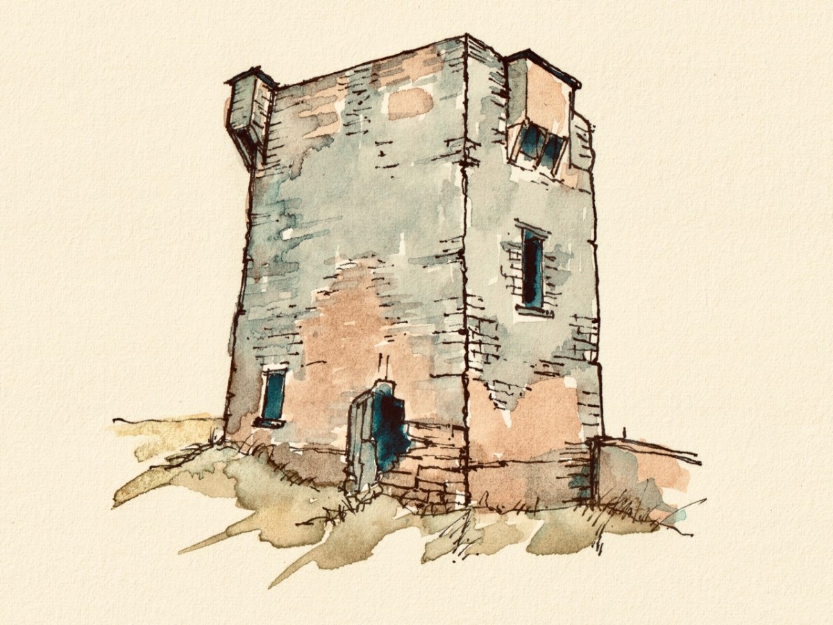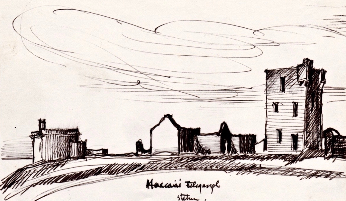 Brow head boasts not only a Marconi Telegraph Station, but also a Napoleonic-era Signal Tower. For a good overview read Mizen Magic 3: Brow Head, but we know you will want to know a lot more about Marconi, the telegraph pioneer, so take a look at In Search of Ghosts for more abut him and his operations on Brow Head. And for two takes on Marconi’s station, there is Peter Clarke’s drawing above and Brian Lalor’s below.