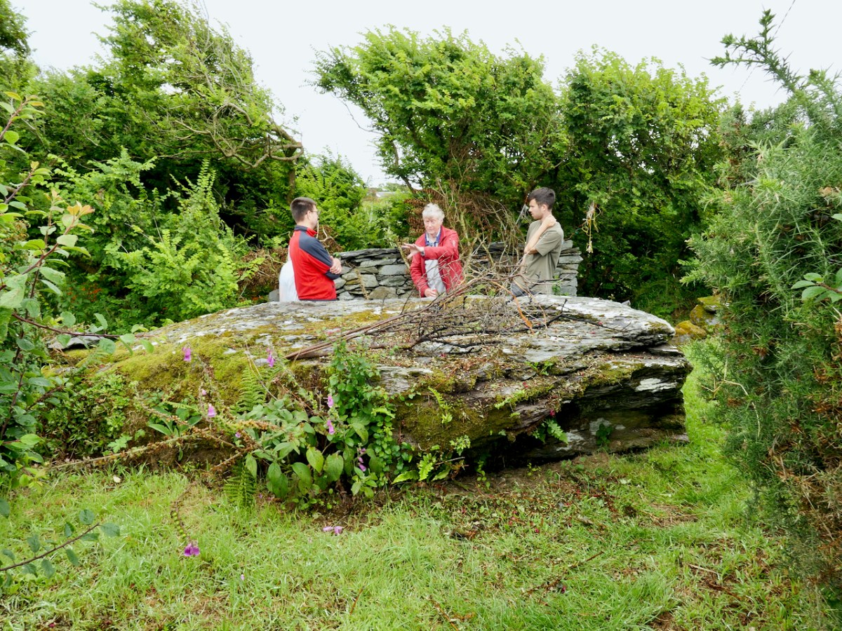 The townland of Balteen has not one but two cupmarked stones, the first built into a ditch by the side of the road. My post was was titled Rock Art and Red Socks, but you’ll have to click on the link to see why. The second rock was on private property but we were welcomed to come in and view it and take photos. I included some videos of both rocks in the post.