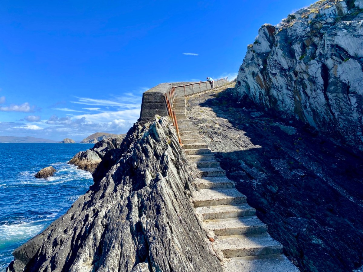 Sticking with the west end of the Mizen, we will introduce you today to some prehistoric rock art (two very different cupmarked stones), a remote and gorgeous stone pier, an historic mine site with links to the Famine, and finally a headland with sea-arches and an ancient promontory fort.