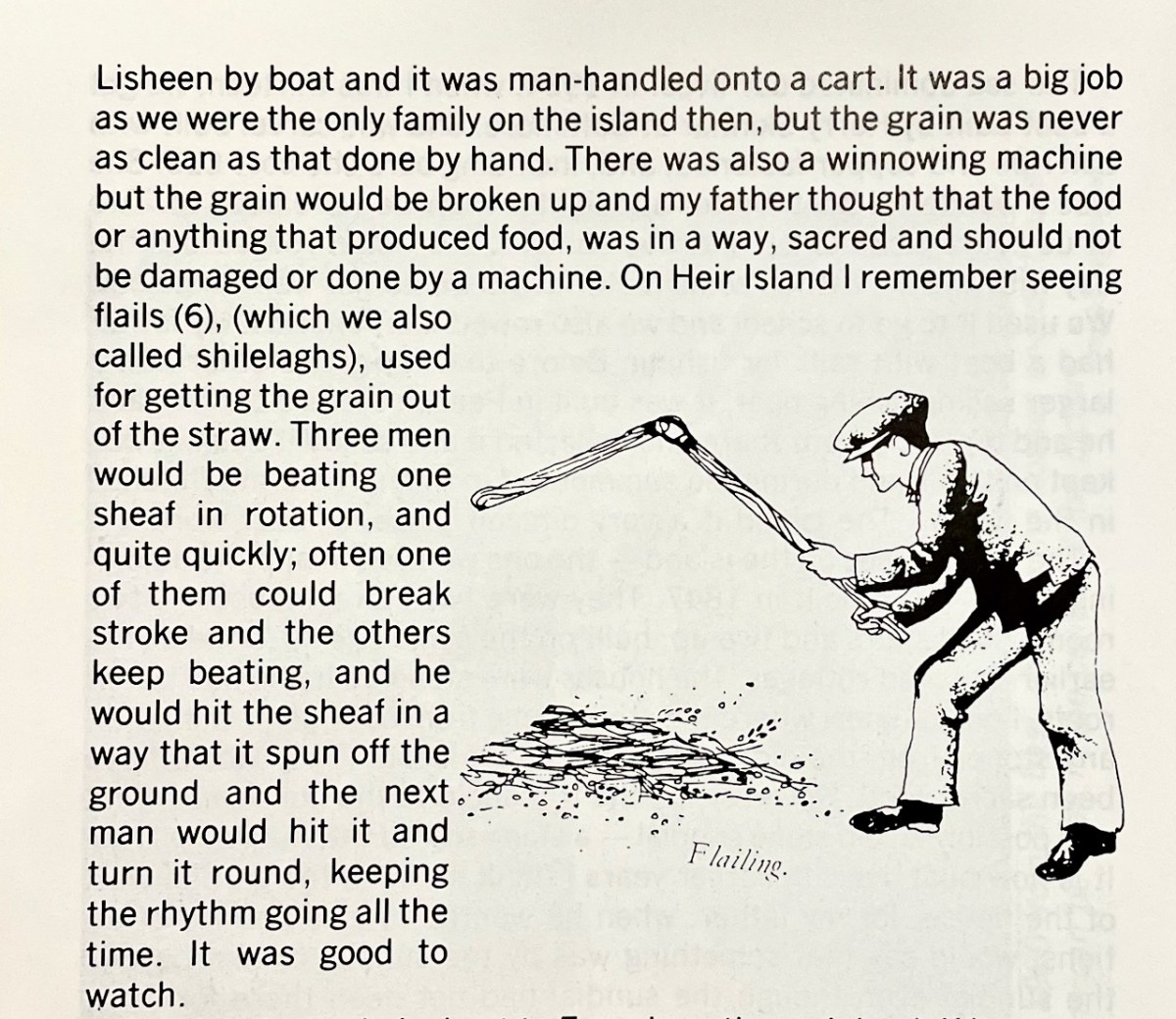 Both Hester and Joe remark that the people on Heir Island, instead of the slashing method, used flails. Here is Joe’s account: