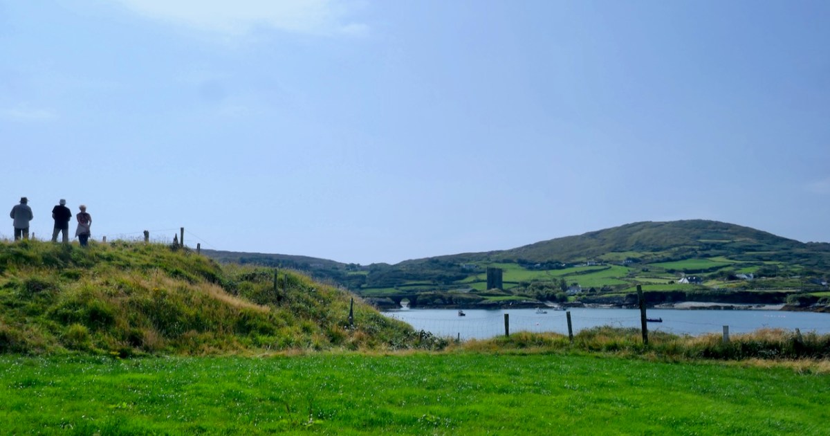 Readers will know how I love some meaty research, especially if I can combine it with photographs, and I started off the year with a bang with two posts on the Anglo-Normans in West Cork: Hiding in Plain Sight. I had the huge advantage of piggy-backing on the work of Con Manning, esteemed medieval archaeologist, and together we looked at sites that might give us clues at the presence of the Anglo-Normans in this part of the country. This was particularly significant because they have left behind so few clues to their presence – or so it seemed. Turns out we were looking in the wrong places after all. One of the sites we think is an Anglo-Norman Ringwork is at Cnockeens, across from Dunmanus Castle (above), currently labelled a cliff-edge fort in the National Monuments records.