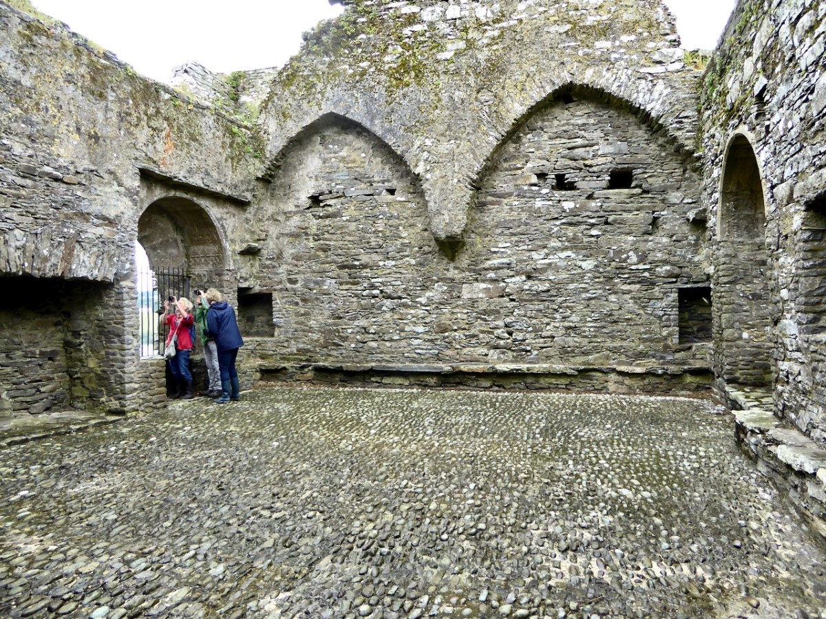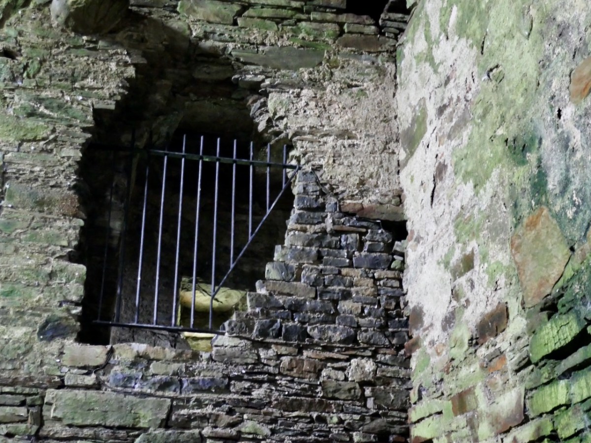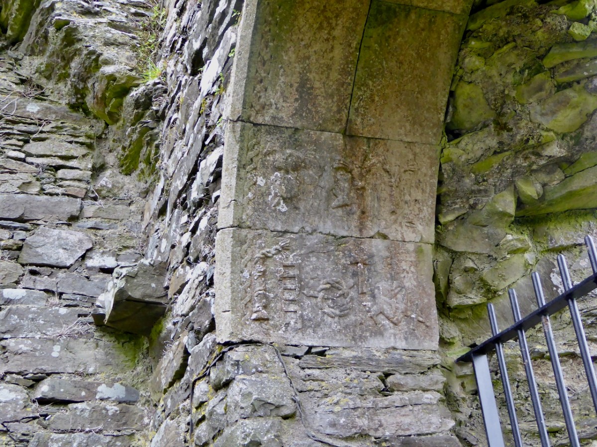 And here we meet more carvings – yes, there are two more window embrasures with carvings on this level. On a window on the north side there is an inscription that gives the date of 1585, and the initials R.M. C.C. for Randal Muirhily (Hurley) and his wife Catherine O Cullane (we met Catherine last week). So this is likely when all the carvings were done.