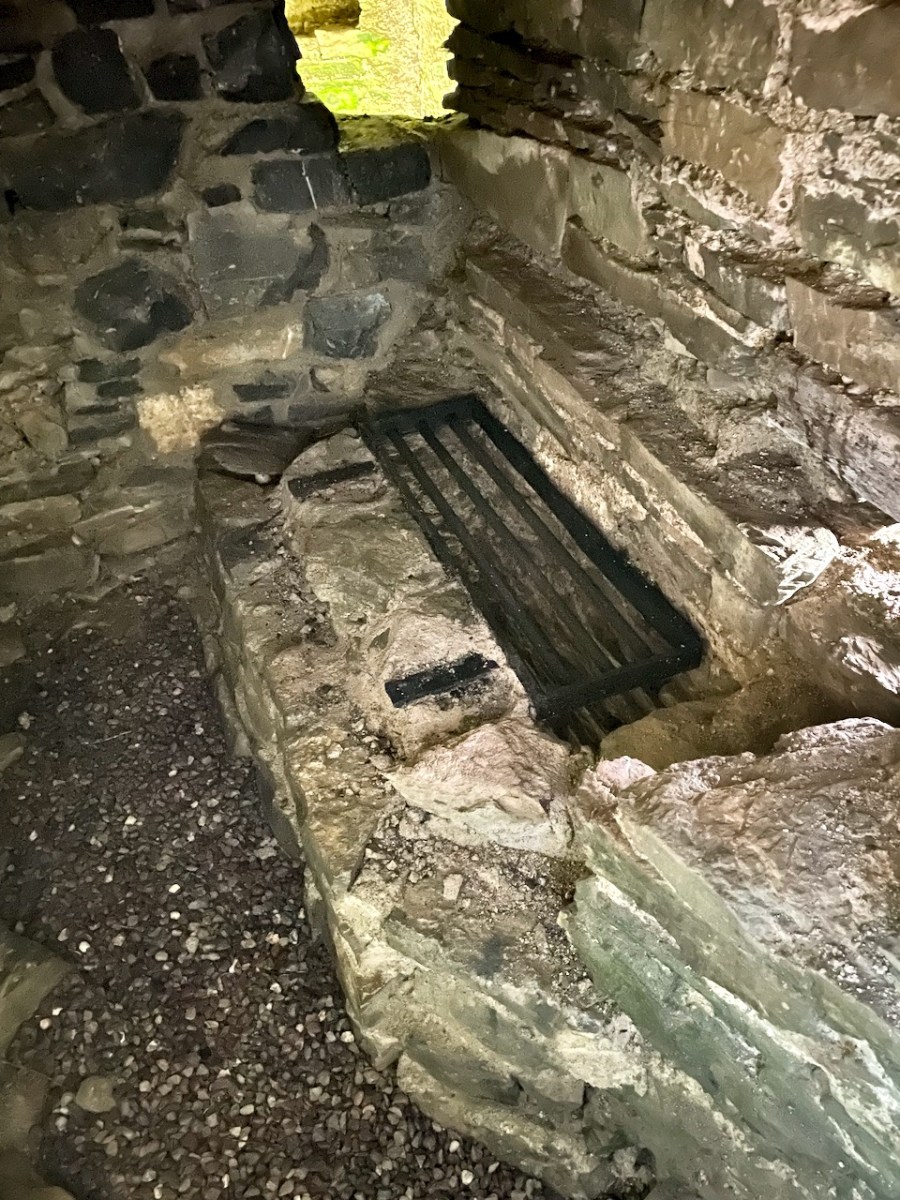 Another mural chamber contained the castle’s indoor plumbing. In the last post we saw the exit of the garderobe chute. Here is the garderobe itself – it would have had a wooden seat for comfort.