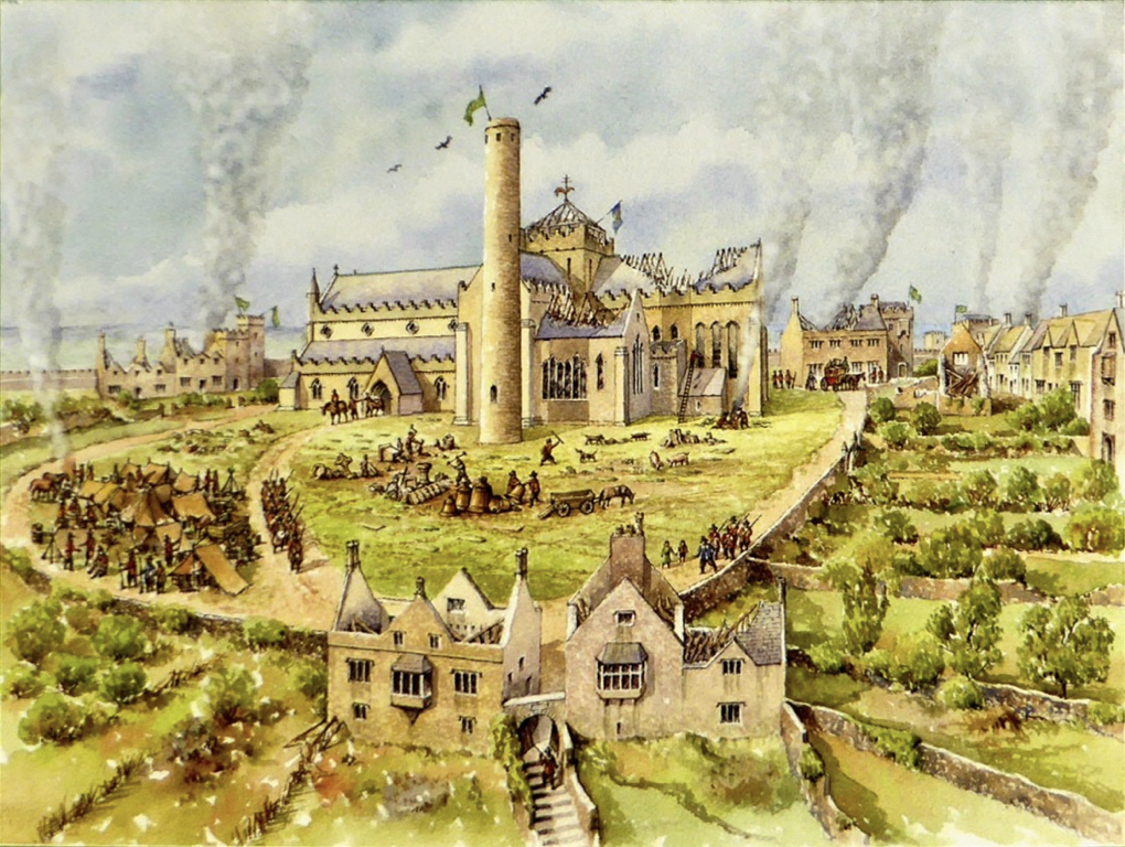 Crucifixion images were particularly anathema to the Protestant reformers. What survived those rampages fell victim to the Cromwellian Puritans from the 1640s on, like the destruction of St Canice’s Cathedral above – once renowned for its great East Window.