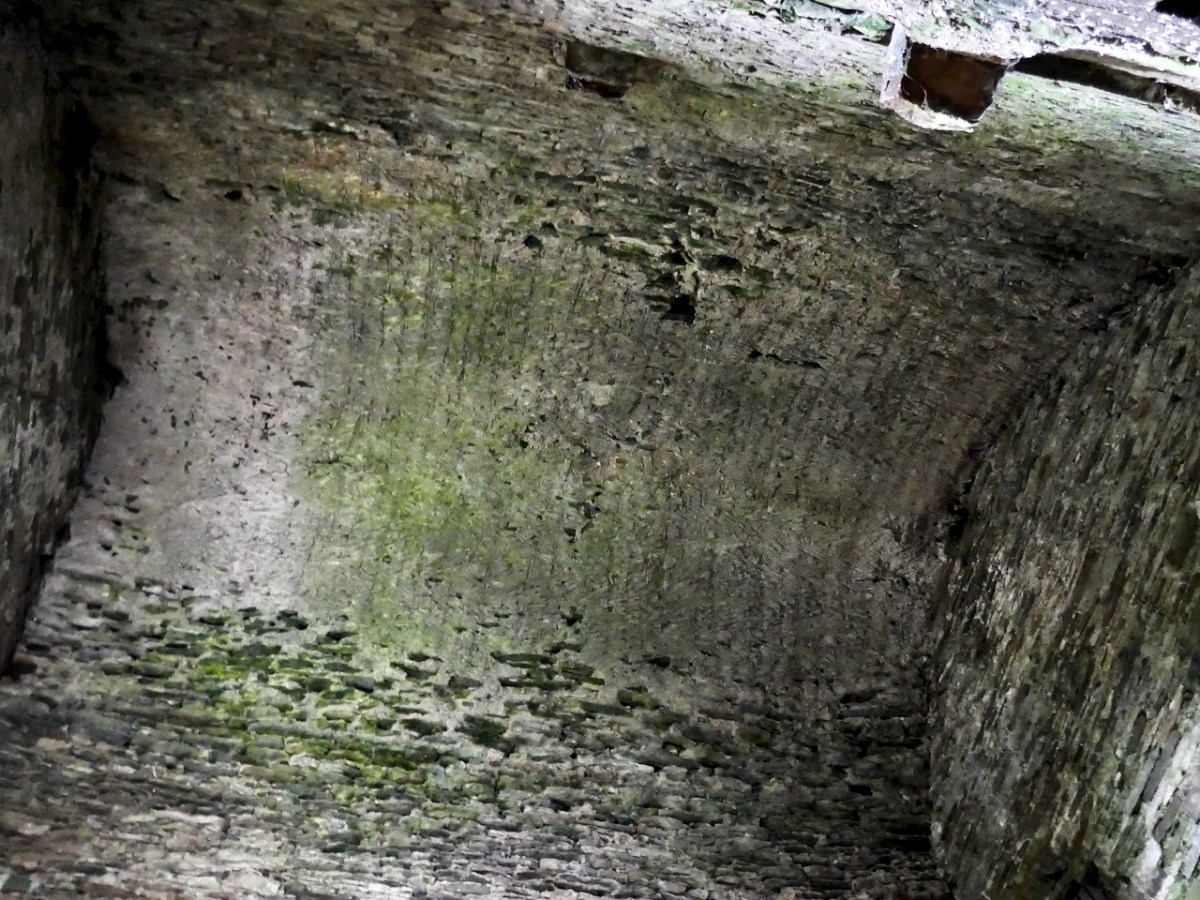 And yes, the interior – let’s go back inside the castle (see Part 1 for the exterior). Before we leave the level under the vault, let’s take a look at the interior render, still in place on the walls. It’s a reminder that those walls would have been lime-rendered in white, which would really have helped with visibility inside.