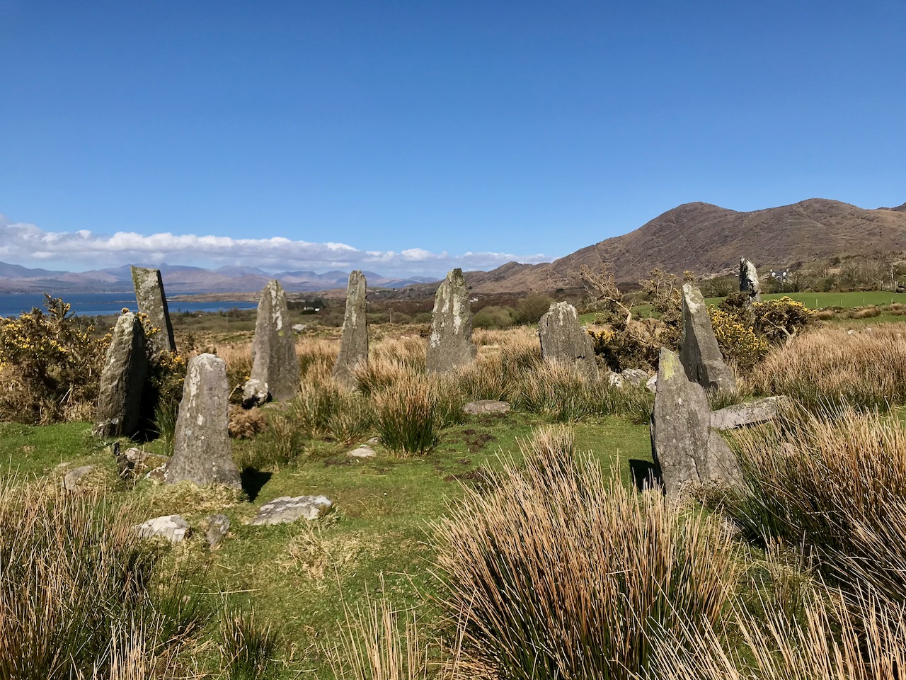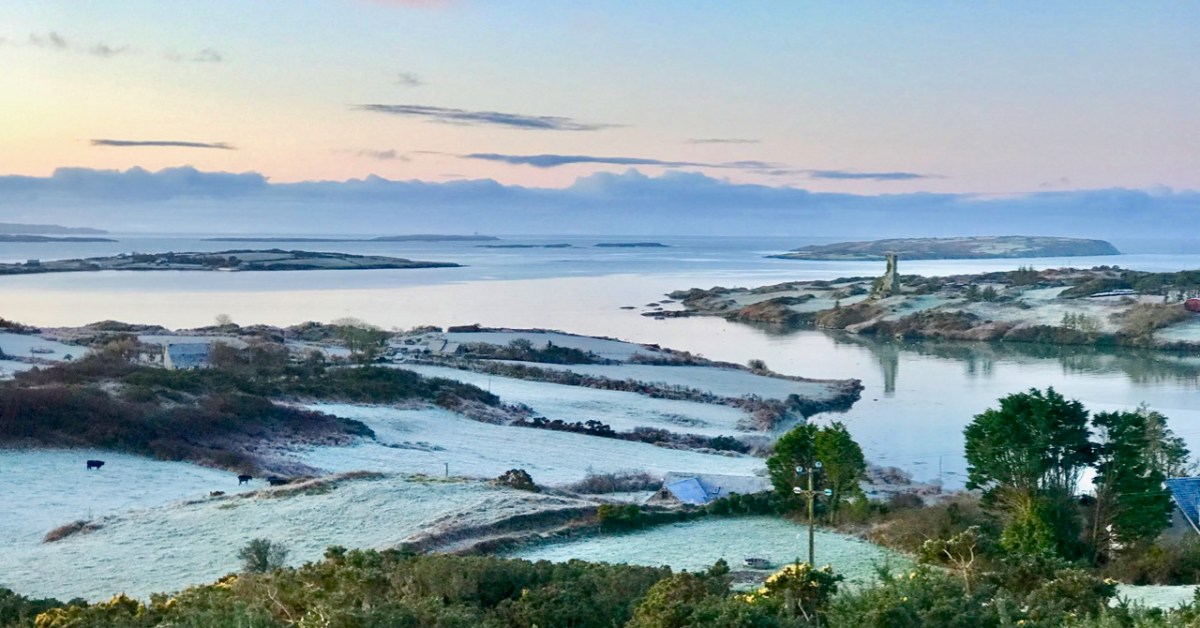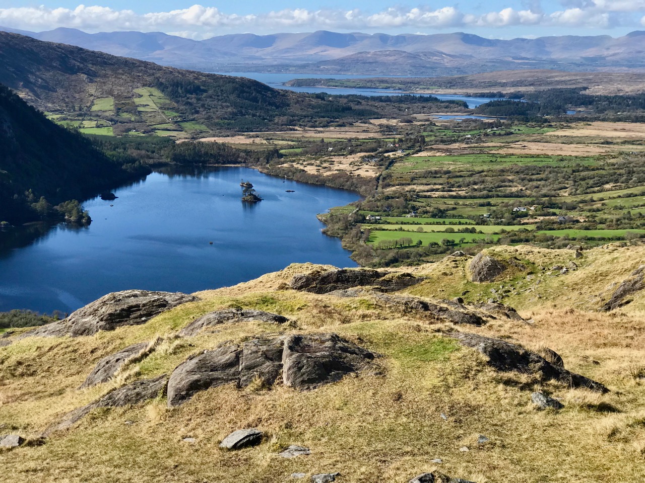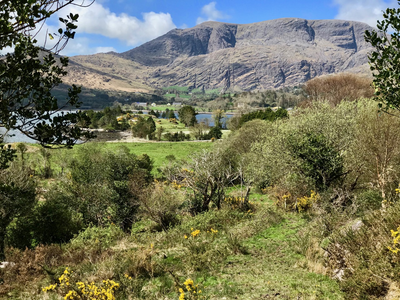 . . . Here was a scene that is hard to equal anywhere else in Ireland. Ahead of us lay the country of O’Sullivan Beara. Away in the distance lay Beara island like a sleeping monster resting on the sea, protected on the northern side by the massive bulk of Hungry Hill, and farther west by a ring of mountains whose western slopes dip down into the Atlantic Ocean. Behind us we looked across Bantry Bay at Bantry away in the distance sheltered by the bulk of Whiddy island. Nearer to us was Glengariff with its myriad of islets and heavily wooded hinterland, cosy and comfortable looking, secure in the shelter of its encircling mountains. On a cold November day in the weak wintry sunshine people do not stay long admiring scenery from such a dank vantage point as Coolieragh, and so we continued our journey westwards along by Adrigole, close to the Healy Pass, skirting the foot of Hungry Hill with its silver streak waterfalls and finally we arrived at the capital of the Beara Peninsula, Castletownbere . . .