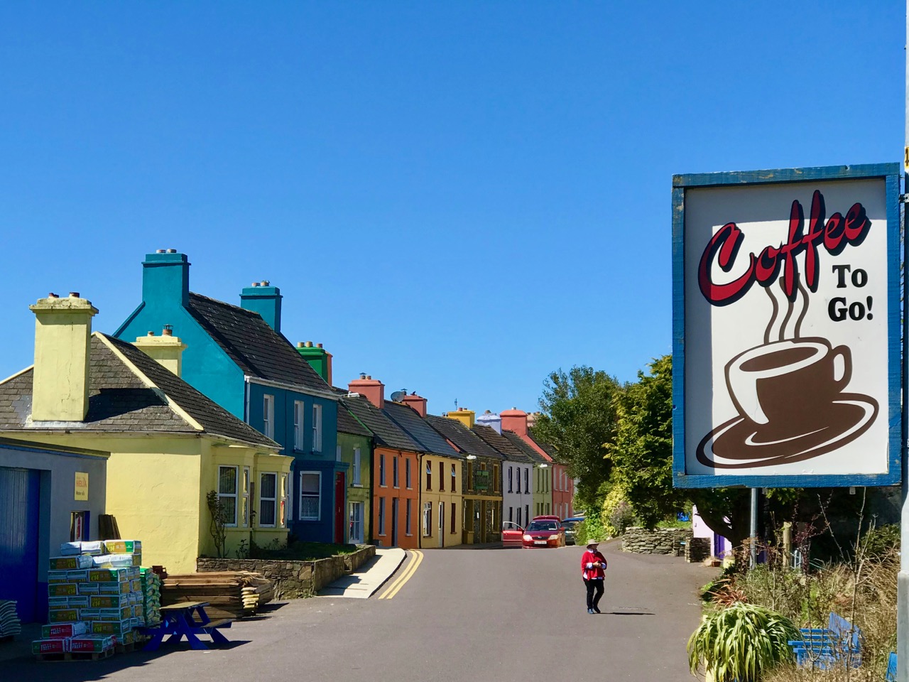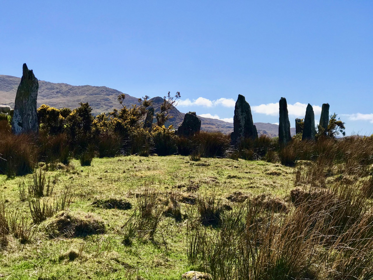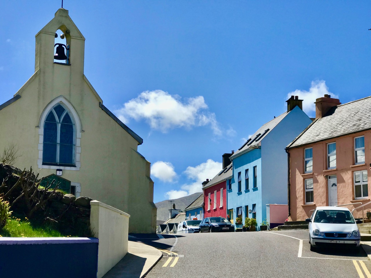 . . . Here was a scene that is hard to equal anywhere else in Ireland. Ahead of us lay the country of O’Sullivan Beara. Away in the distance lay Beara island like a sleeping monster resting on the sea, protected on the northern side by the massive bulk of Hungry Hill, and farther west by a ring of mountains whose western slopes dip down into the Atlantic Ocean. Behind us we looked across Bantry Bay at Bantry away in the distance sheltered by the bulk of Whiddy island. Nearer to us was Glengariff with its myriad of islets and heavily wooded hinterland, cosy and comfortable looking, secure in the shelter of its encircling mountains. On a cold November day in the weak wintry sunshine people do not stay long admiring scenery from such a dank vantage point as Coolieragh, and so we continued our journey westwards along by Adrigole, close to the Healy Pass, skirting the foot of Hungry Hill with its silver streak waterfalls and finally we arrived at the capital of the Beara Peninsula, Castletownbere . . .