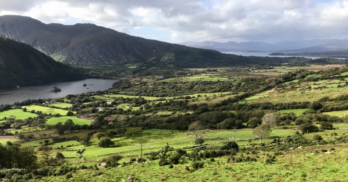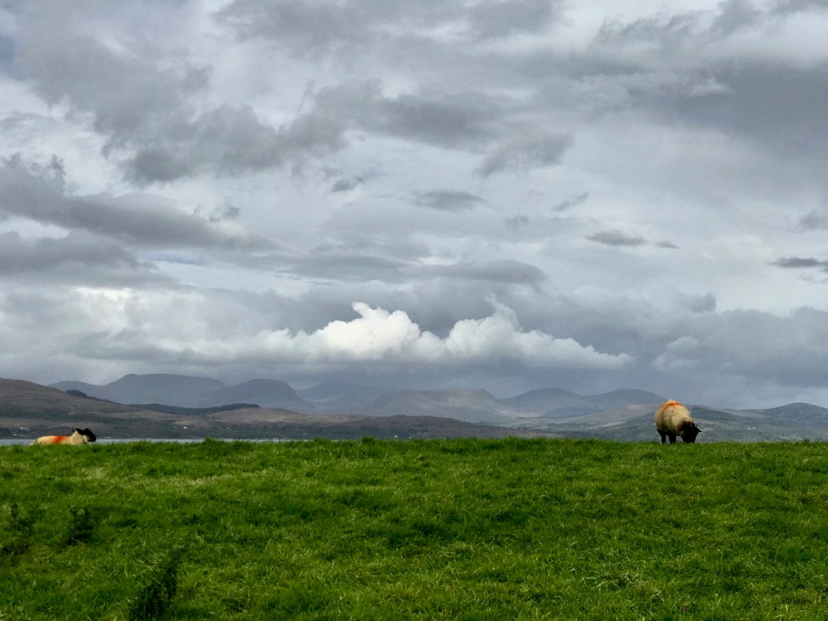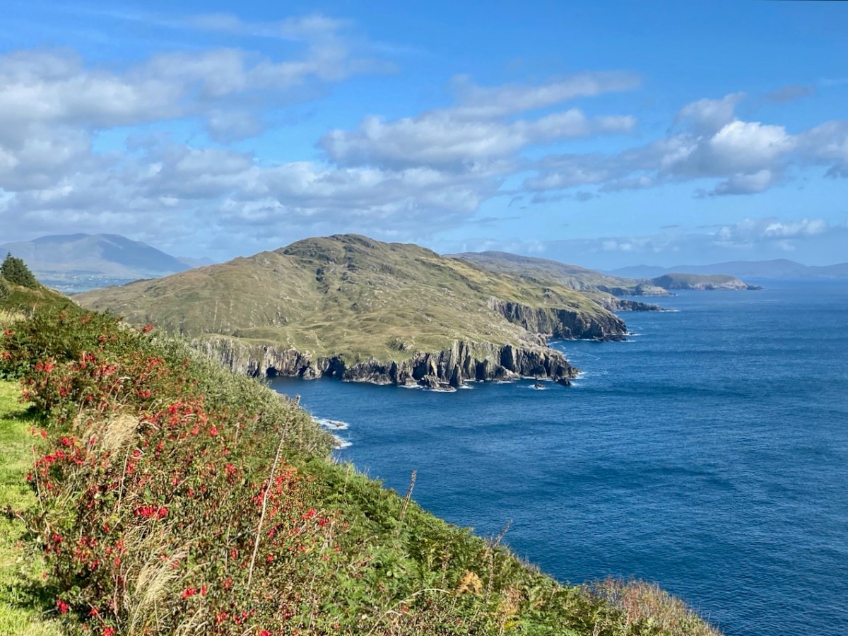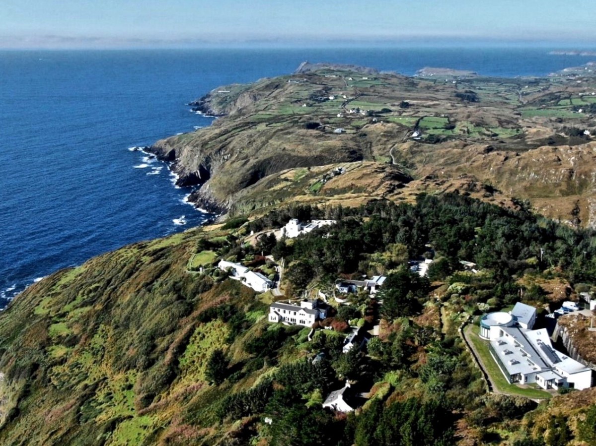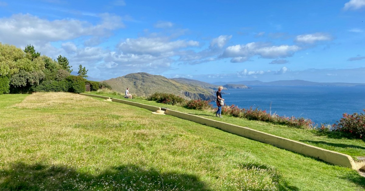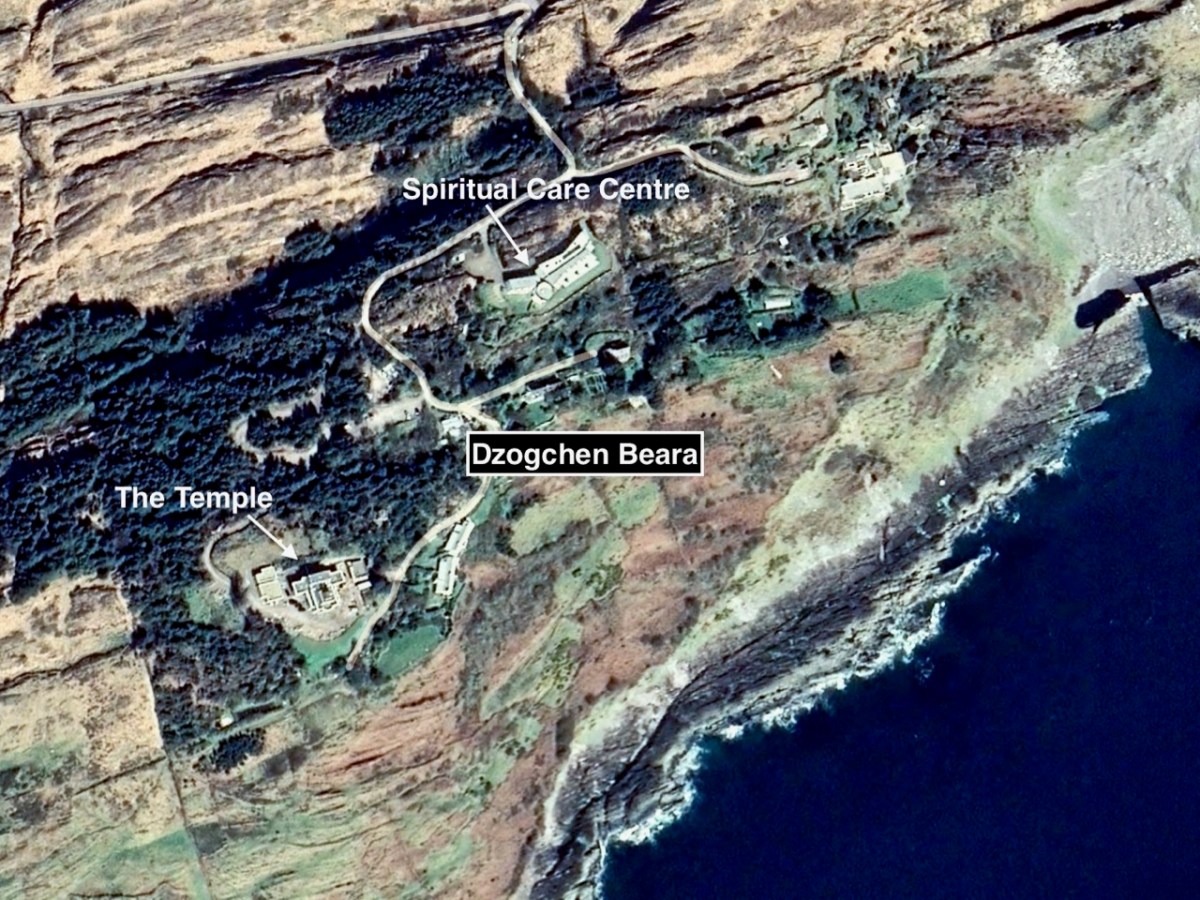 I am using the aerial view, above, courtesy of Dzogchen Beara Tibetan Buddhist Retreat Centre. All the buildings in the lower part of the picture are within the centre, which was founded by Sogyal Rinpoche in 1987. On the lower right is The Spiritual Care Centre – opened by Ireland’s President, Mary McAleese in 2007 – which provides a safe and supportive environment for people living with a life-altering illness, recovering from treatment, facing the end of their life or experiencing bereavement, as well as their families, loved ones and others who care for them. It’s a special, culturally significant place – and you can see how its siting takes the fullest advantage of the impressive scenery.